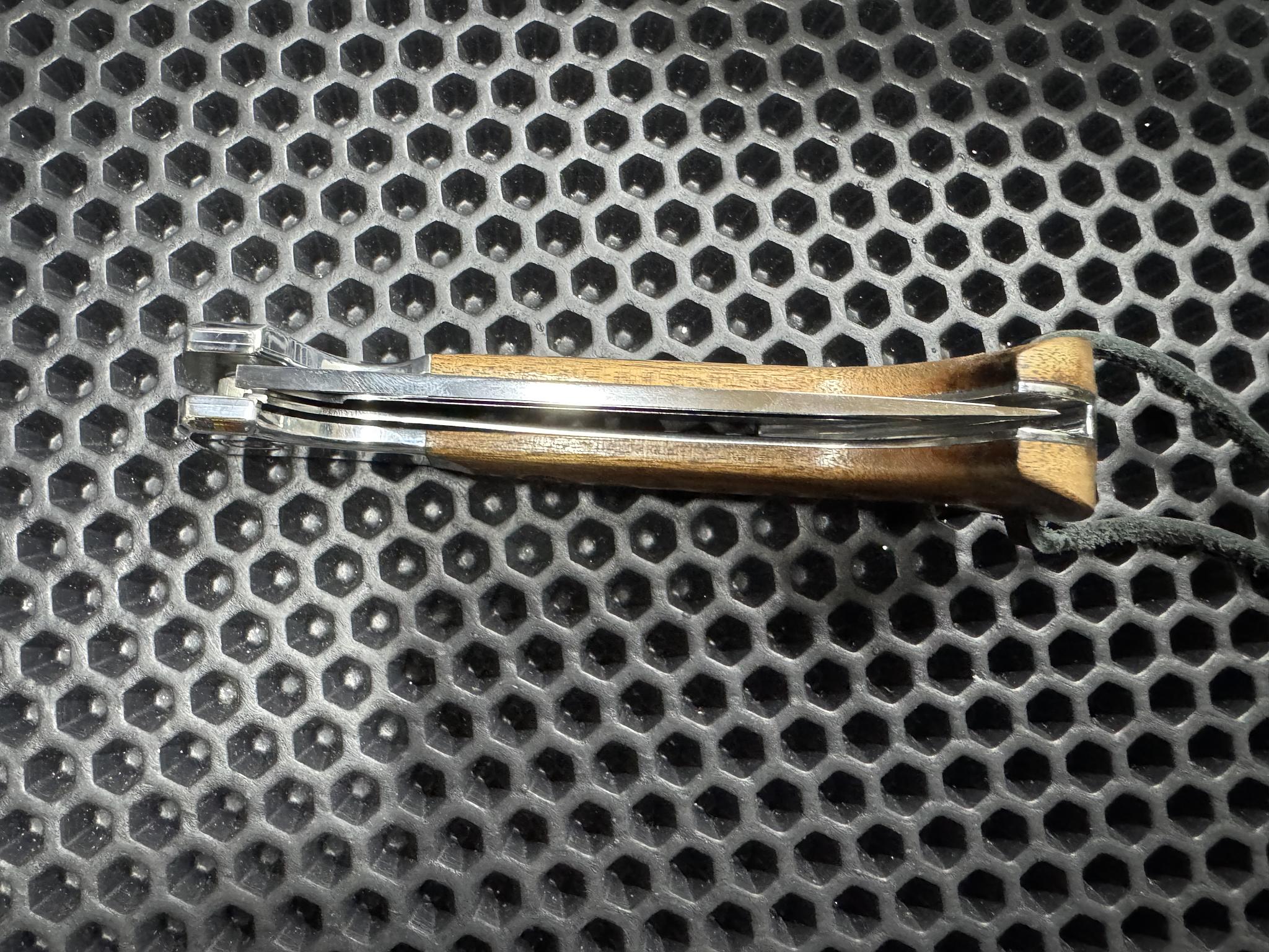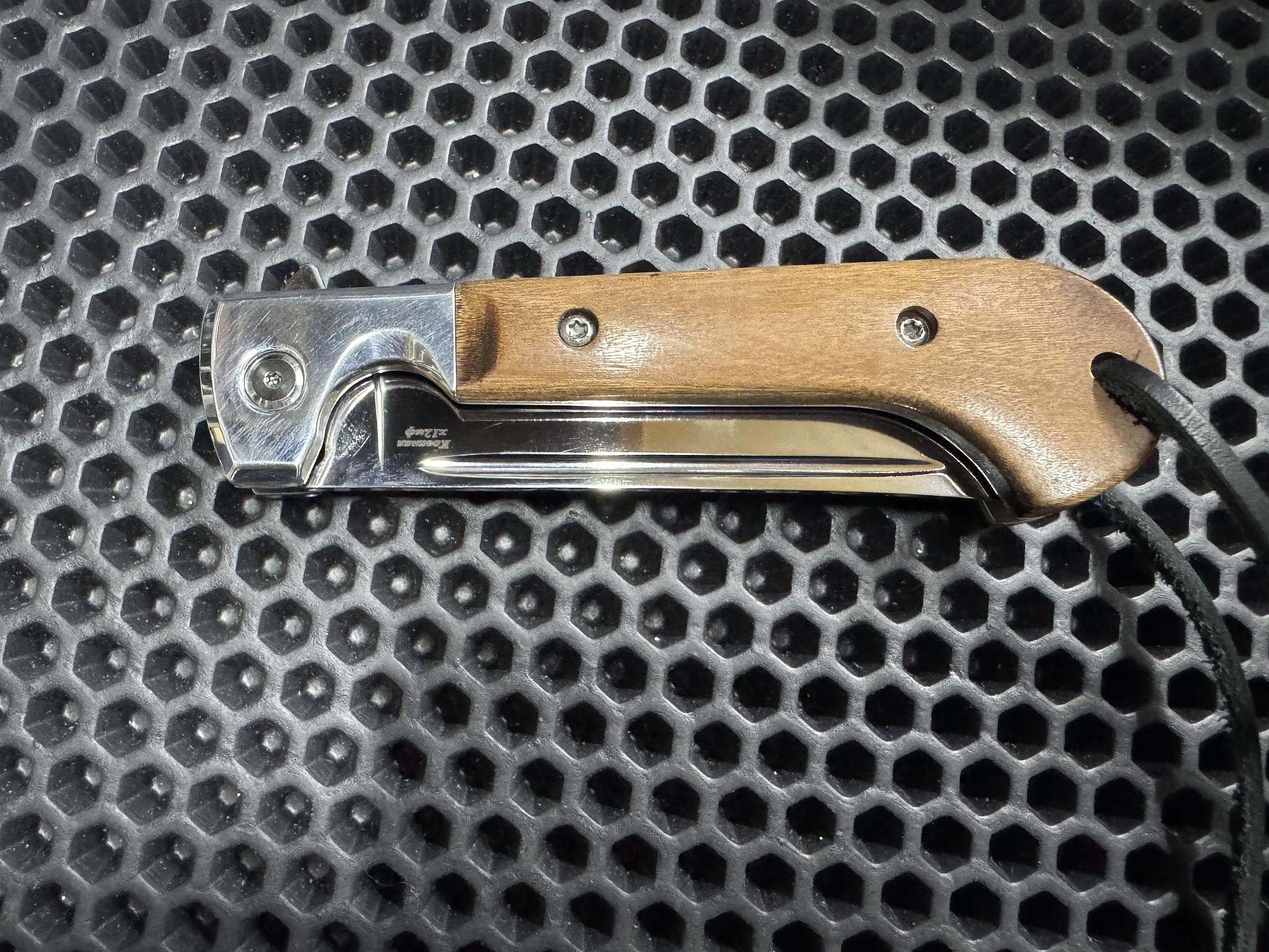 НовобурейскийРысь": сталь - Bohler М390; рукоять - карельская береза. Не является холодный оружием.