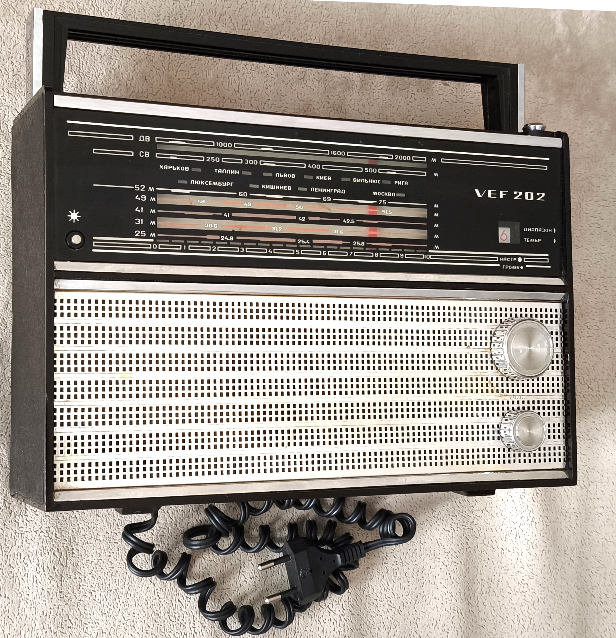 ДимитровградПредлагаю к продаже радиоприемник ВЭФ 202 в отличном внешне и рабочем состоянии. В приемник встроены две планки с поддиапазонами 16 и 19 метров, а также блок питания фабричного производства (не родной). Могу предложить планку FM диапазона для самостоятельной установки (1500 р. )