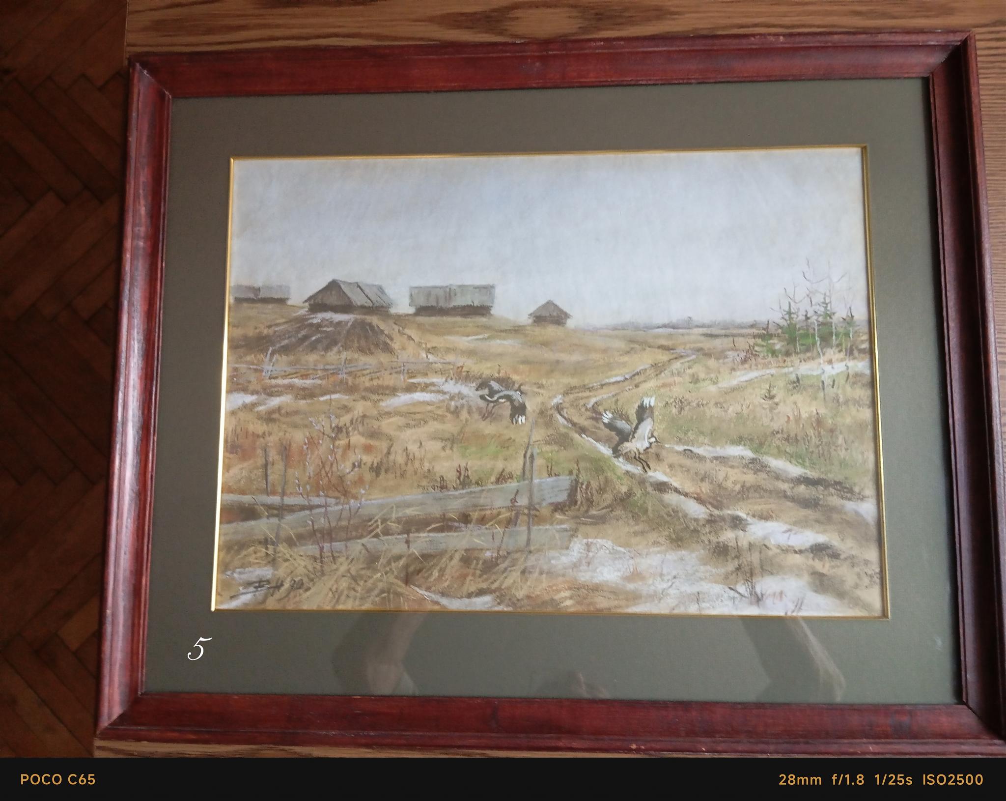 МоскваКартины художника Новокрещенных В. Т. 1. Журавли на жнивье. Картон. Пастель. 1989г. 40х49, 5 (в раме 54х62, 5 см. ) – 4800 руб. 2. Тетерева на болоте. Картон. Пастель 1990г. 36х50 см. (в раме 52х65 см. ) – 4500 руб. 3. Ранняя весна. Картон, Пастель. 1990г. 45х65 см. (в раме 60х79 см. ) – 4900 руб ...