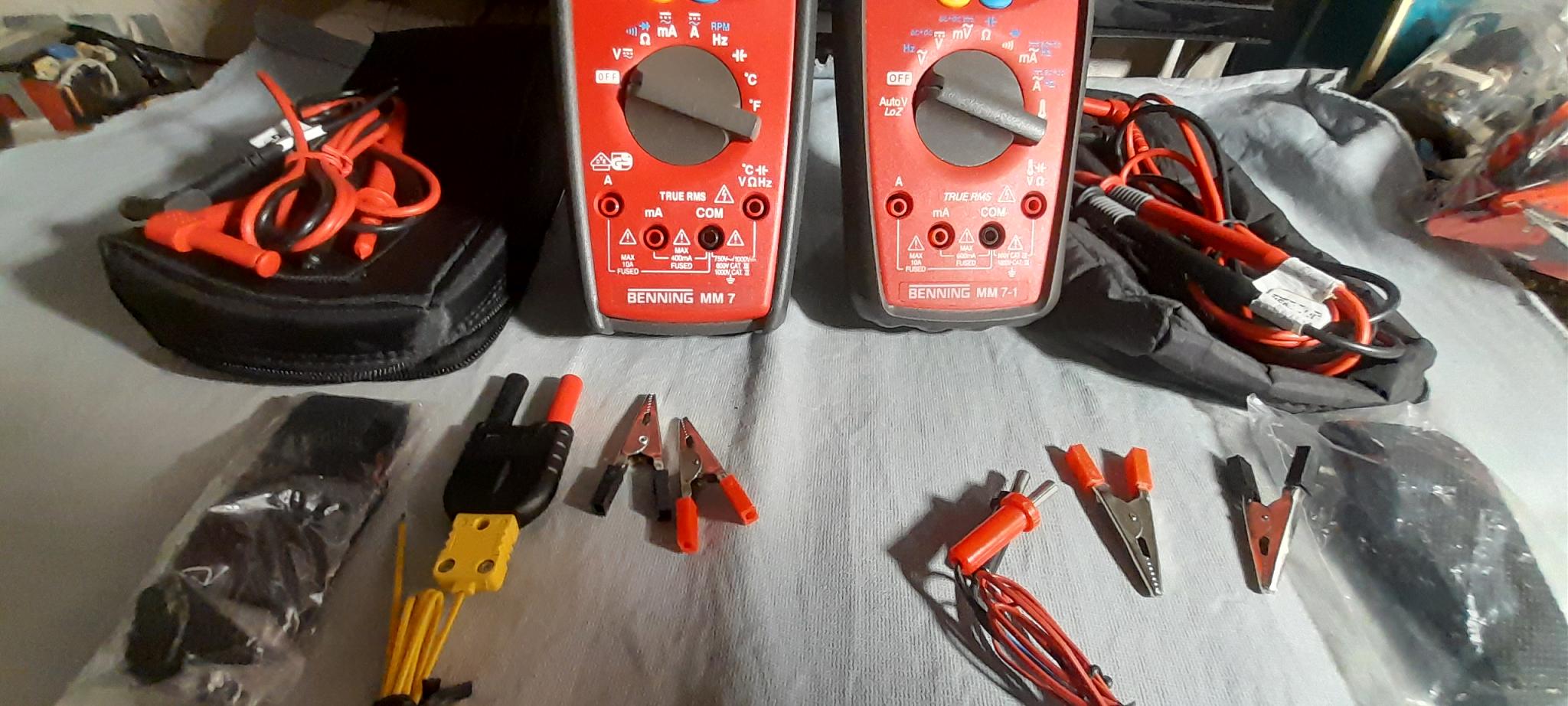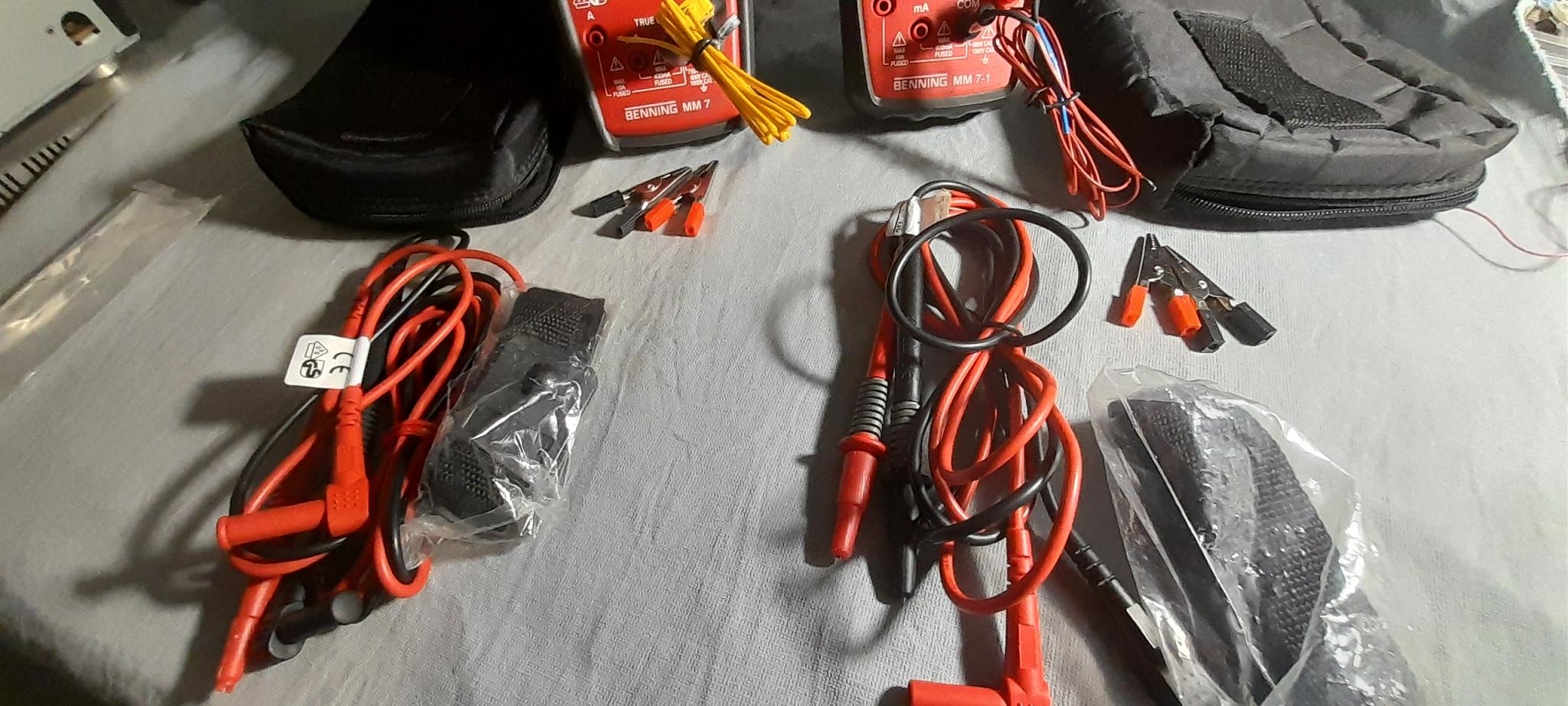 Цифровой мультиметр ВЕNNING В наличии 2 штуки. 1) Цифровой мультиметр BENNING MM 7-1 В рабочем состоянии. В комплекте: Прибор, Сумка для переноски. Защитный резиновый чехол. Батарейка 9 вольт. Измерительные провода. 2 крокодильчика. Магнитный держатель с адаптером Датчик температуры. Инстру ...