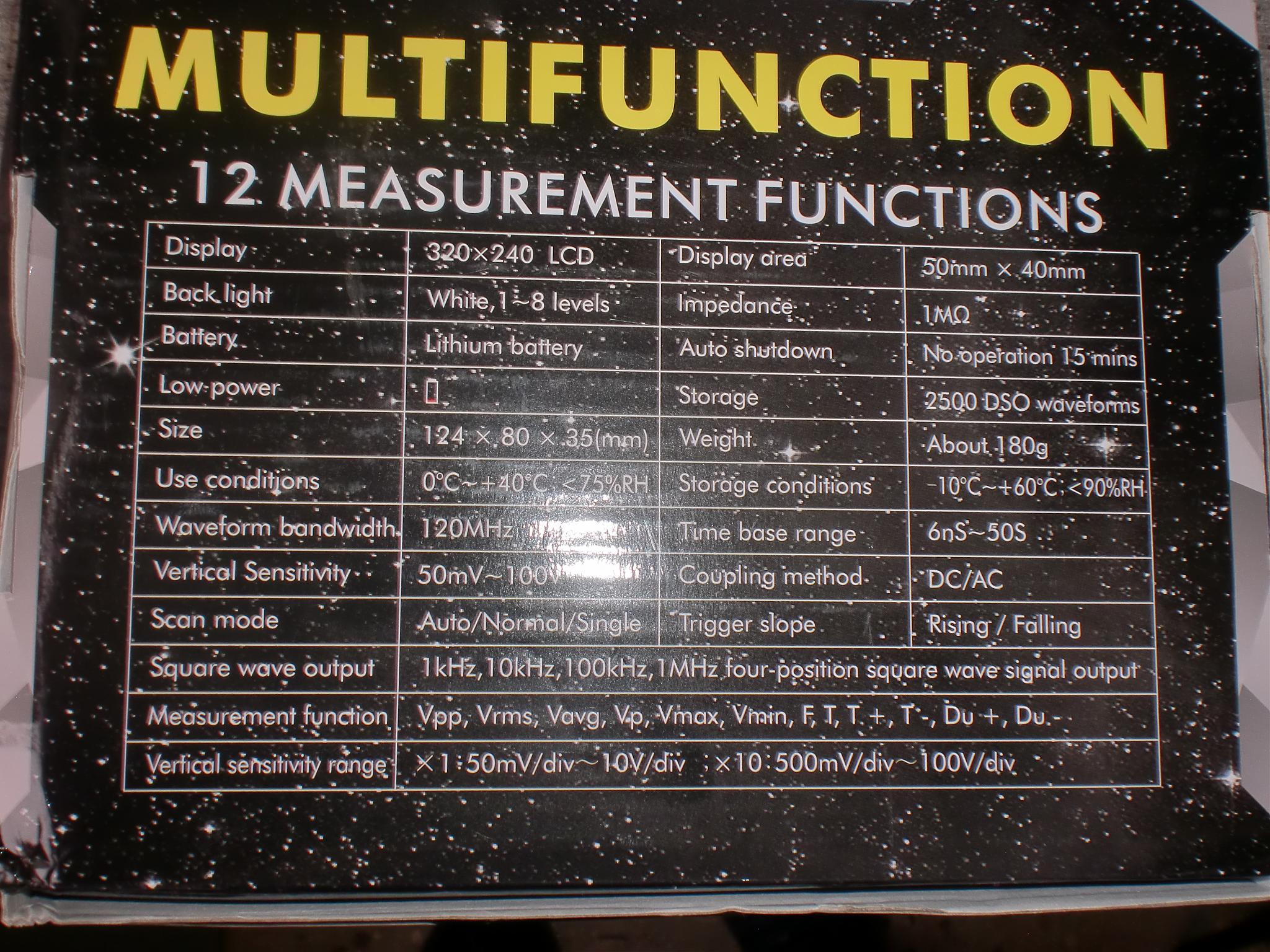 Санкт-ПетербургОсновные параметры. Питание: 3. 7В литиевая батарея 1500мАч Дисплей: 2. 4 дюйма цветной TFT экран 320х240 точек с подсветкой Цифровой осциллограф Входной импеданс: 1МОм Частота дискретизации: до 10 млн. выборок в секунду Полоса пропускания: 0 - 500кГц Развязка входного сигнала: AC, DC Канало ...