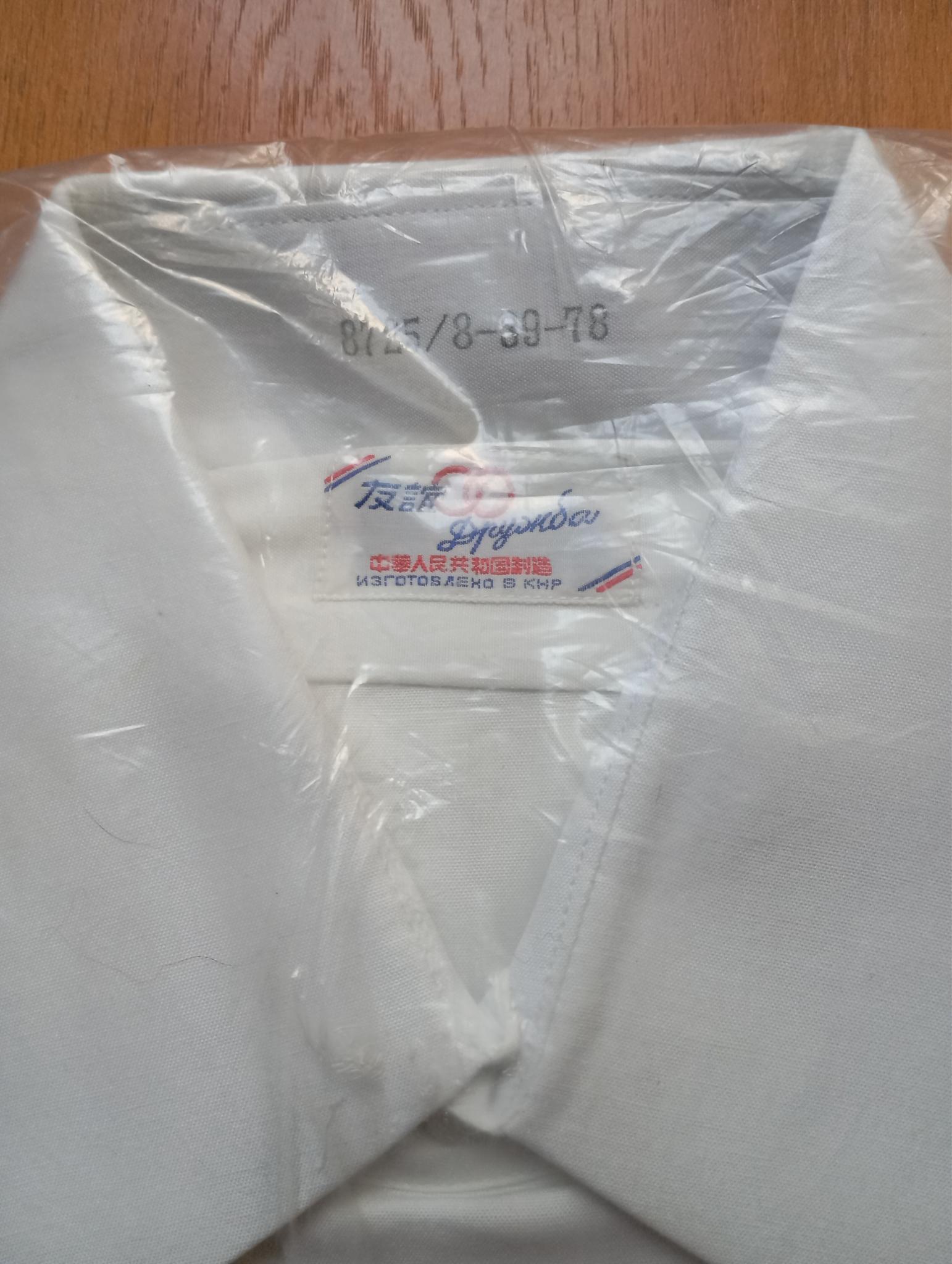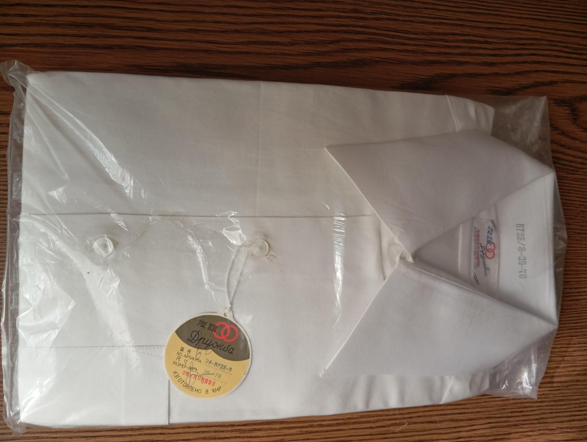 Санкт-ПетербургРубашка «Дружба» Китай, размер 39. Рубашка абсолютно новая в фабричной упаковке, не вскрывалась. Сохранены все булавки и фабричные картонки.