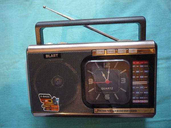 Аналоговый переносной приемник "Бласт" рабочий с кварцевыми часами и с подсветкой. Имеет ФМ диапазон и гнездо ЮСБ.