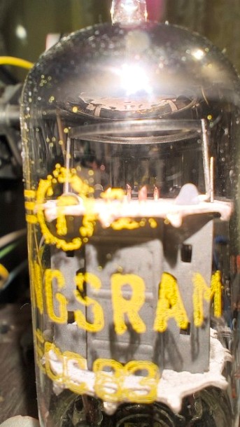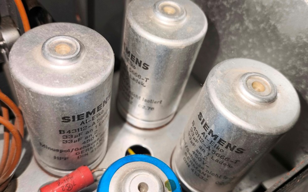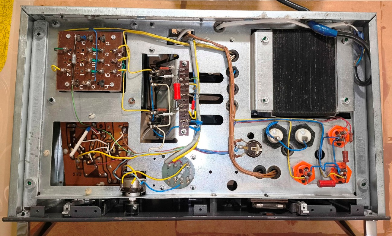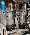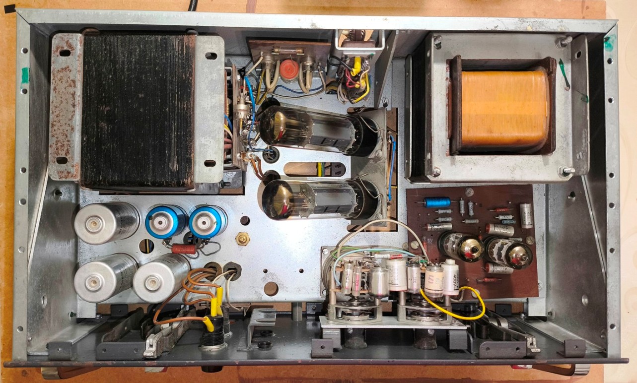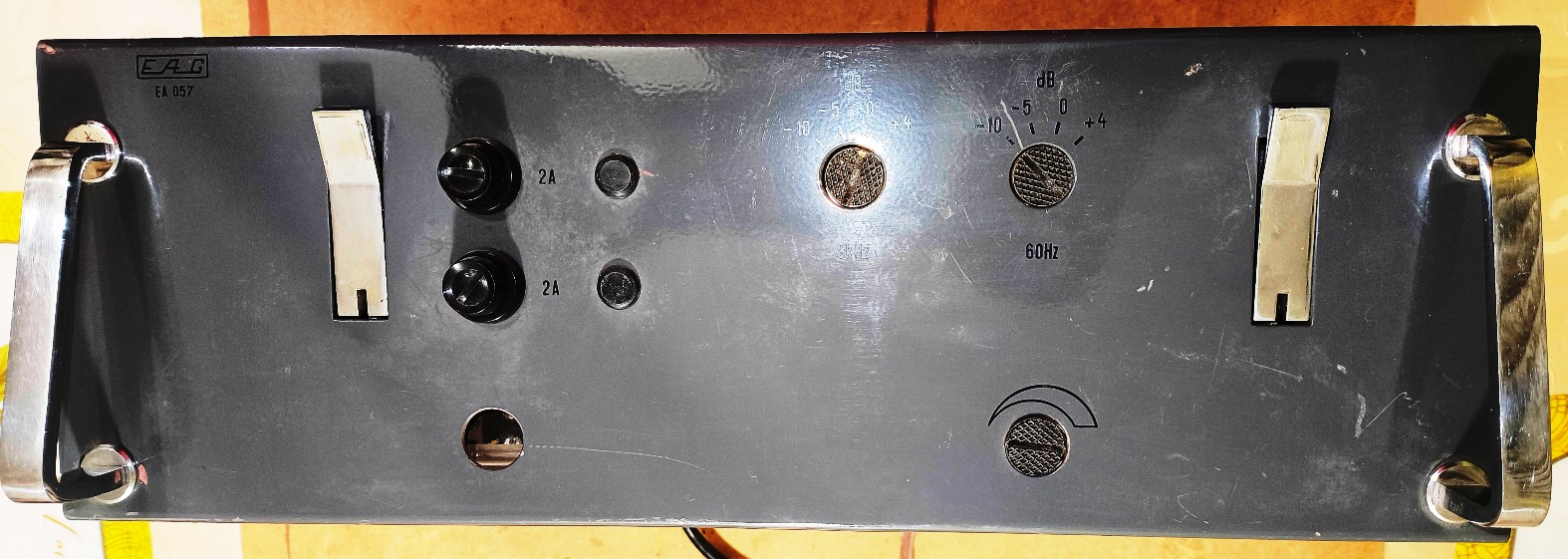 EAG EA 057. Силовой тр-р исправен- в контрольных точках схемы напряжение есть. В БП анодные конденсаторы- Сименс, смещения- ММ (Венгрия). Выходной тр-р- исправен, обрывов нет. Лампы в преде- родные ECC83, выходные EL34. Токи анодов выставлены небольшие, цепи смещения перепаивались на автоматическое. Выходная мощность = 42, 7 В*42, 7 В / 19 Ом = 96 Вт.
