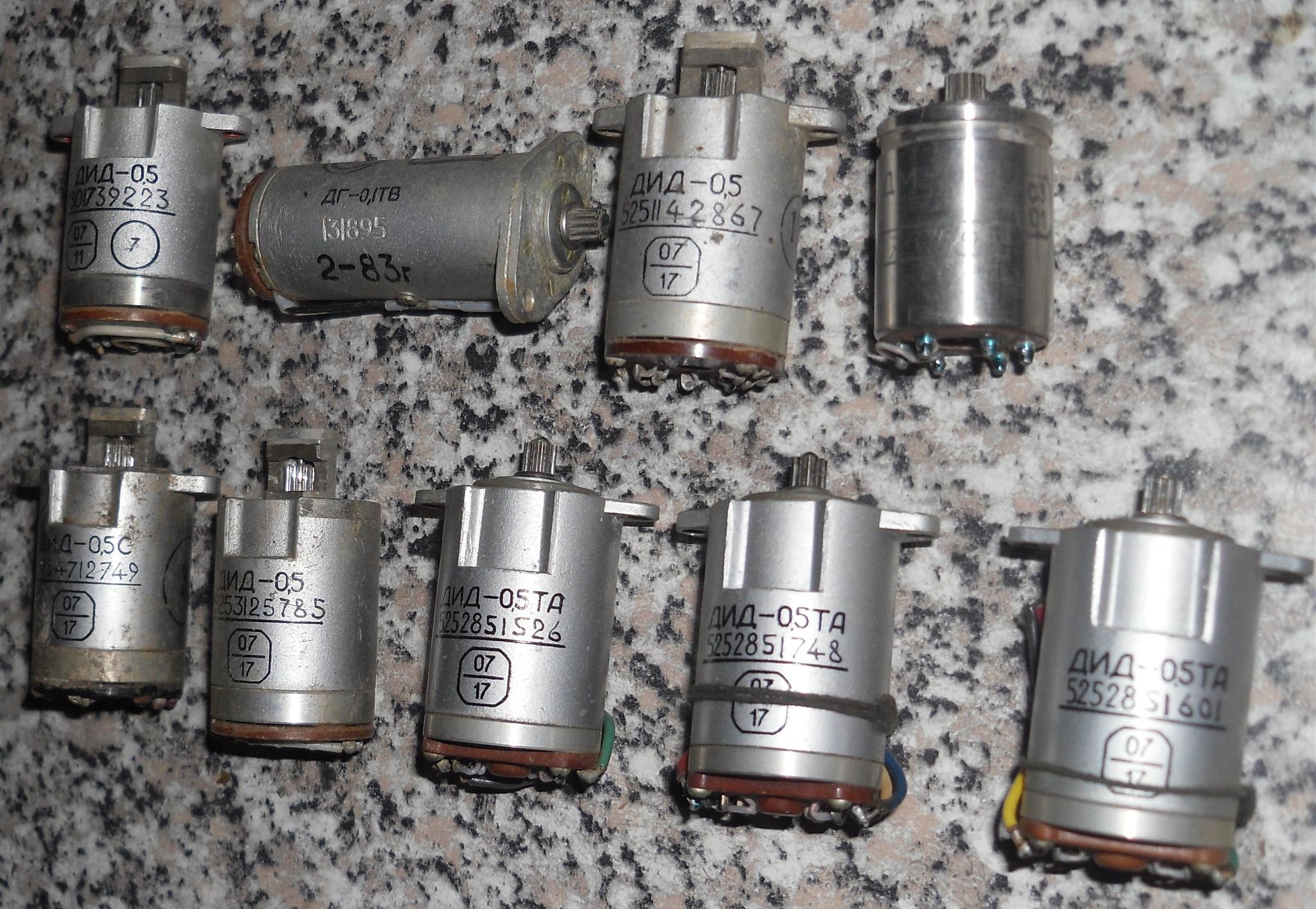 1. Набор электромоторов с демонтажа с военных радиостанций СССР типа ДИД-0, 5, ДГ, ДМ-0, 1А, всего в наборе 9шт., продам только все вместе без деления 2000руб. +почта;