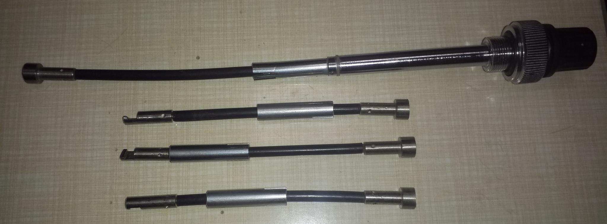 Гибкий вал предназначен для управления элементами конструкции, расположенных сбоку от оси вращения приборной ручки. Стыковка гибкого вала с панельным проводится смещением трубки вдоль вала,. а фиксация конца гибкого вала с элементами конструкции проводится резьбовым соединением М8-мелкая. Посадочное отверстие для ручки управления на панели устройства 16 мм.