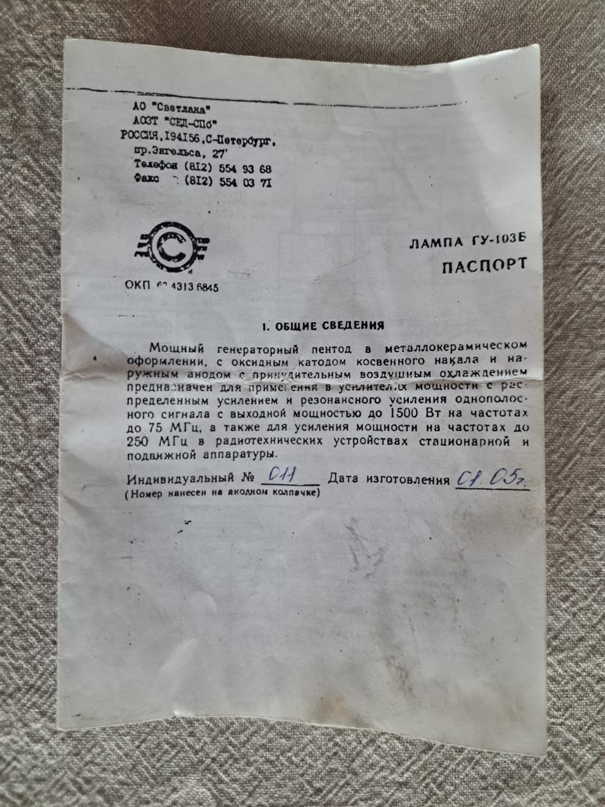 QRZ.RU > Объявления > Любительская радиосвязь > Комплектующие для УМ > ГУ-103Б с панелью и диффузором от ГУ-74б