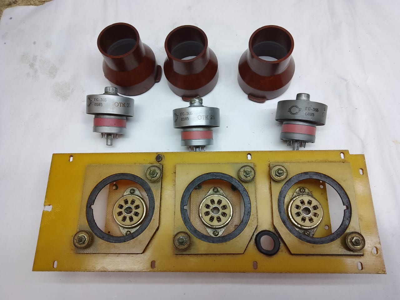 Сборка из трех ламп ГУ-36Б, с панелями и тубусами охлаждения.