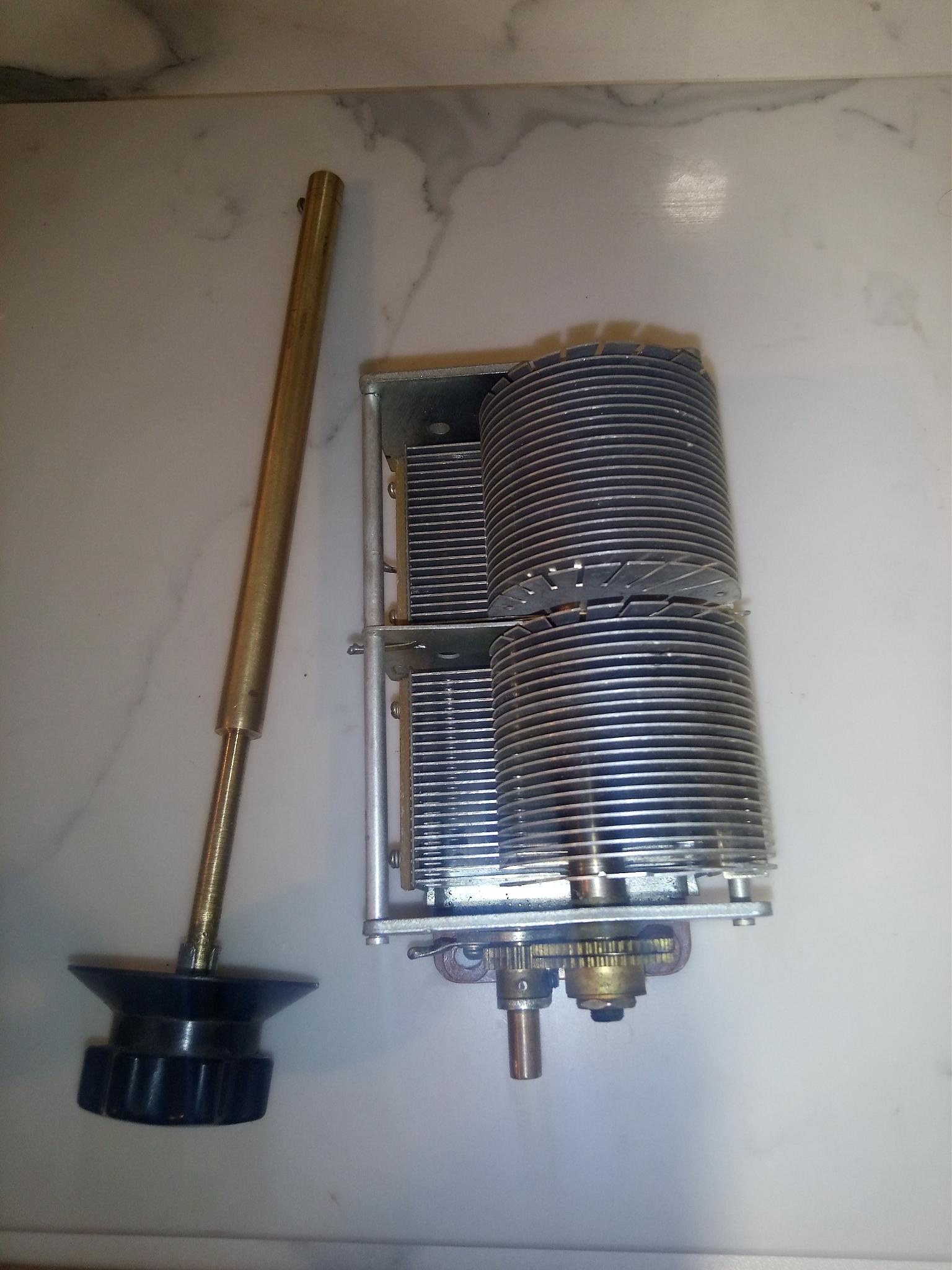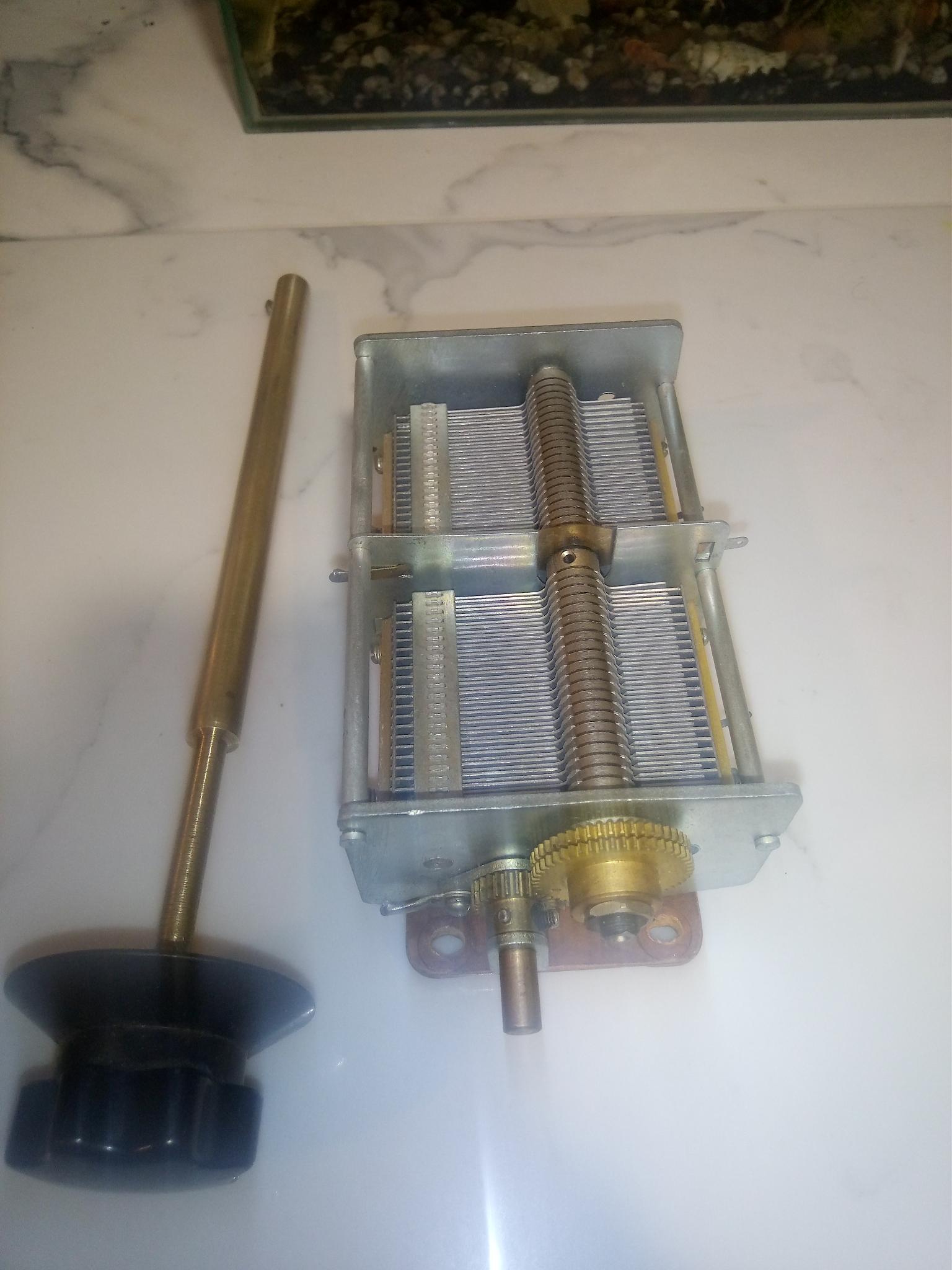 конденсатор переменный с удлинителем оси и ручкой в комплекте.