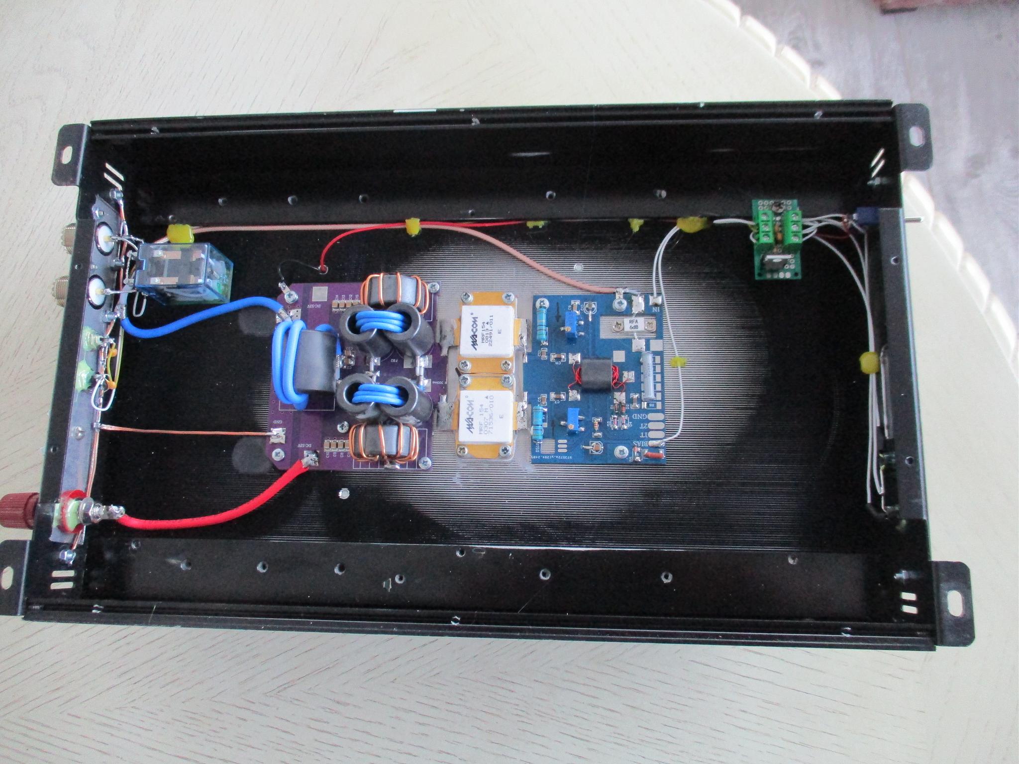 усилитель мощности кв диапазона 1. 8-30мгц. выходная мощность до 1000 ватт максимальная входная мощность до 15 ватт. собран на двух американских транзисторах mrf-154. требует два питания одно питание 50 вольт второе 13. 8в.. управление тх подходит для любого трансивера. в обьявлении фотографии усилителя того, что продается.