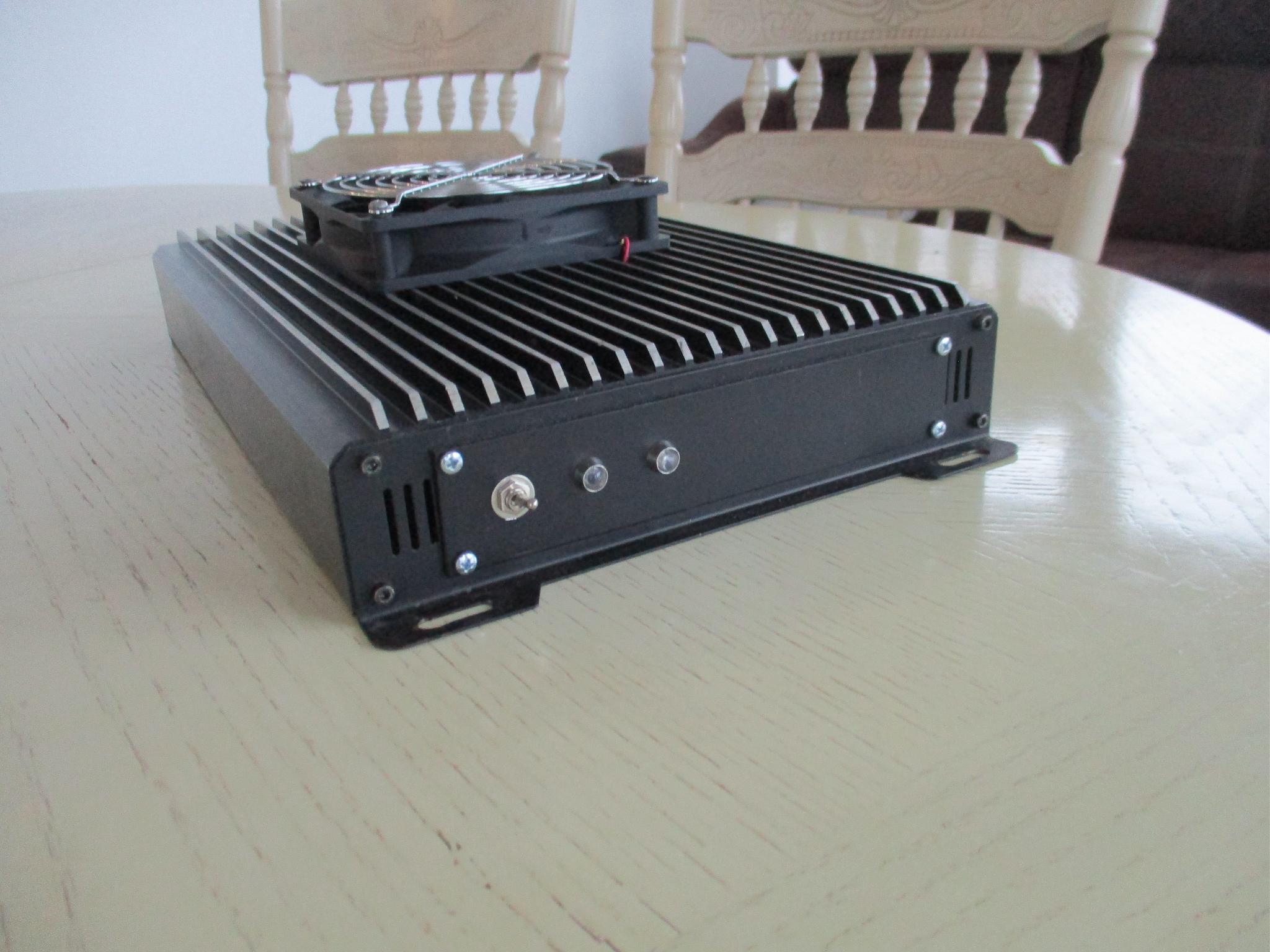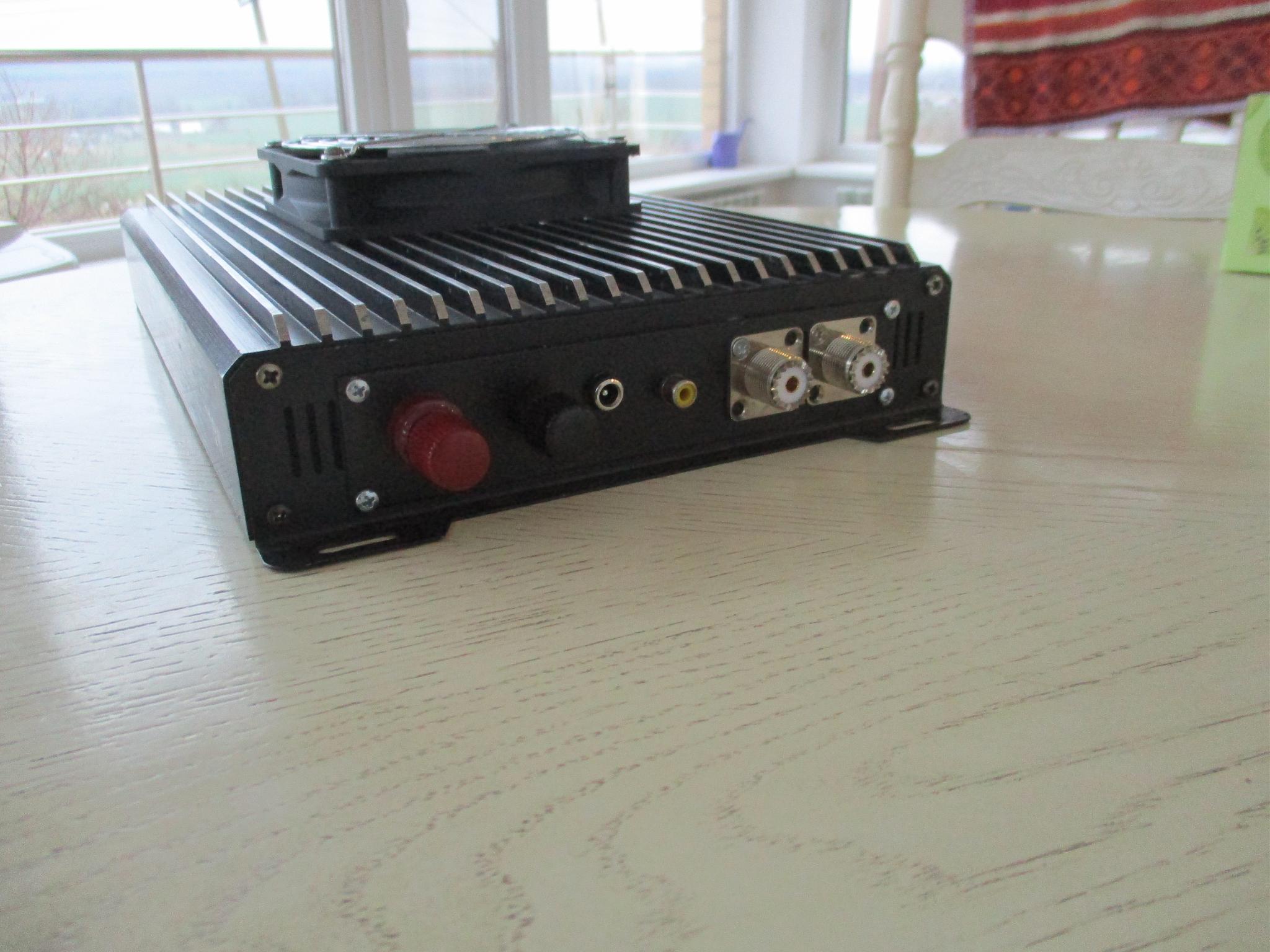 усилитель мощности на кв диапазон 1. 8-50мгц выходная мощность 1 квт. собран на современном транзисторе MRFE6VP61K25GN. для лучшей теплоотдачи транзистор припаян к медной пластине. по входу стоит защита от перекачки в виде супрессора. фнч нет. входная мощность до 15 ватт. питание 50в и 12в.