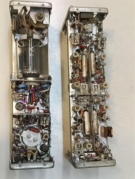 Два блока на разбор. Керамические каркасы для контурных катушек, подстроечные конденсаторы с воздушным диэлектриком, ВЧ-реле.