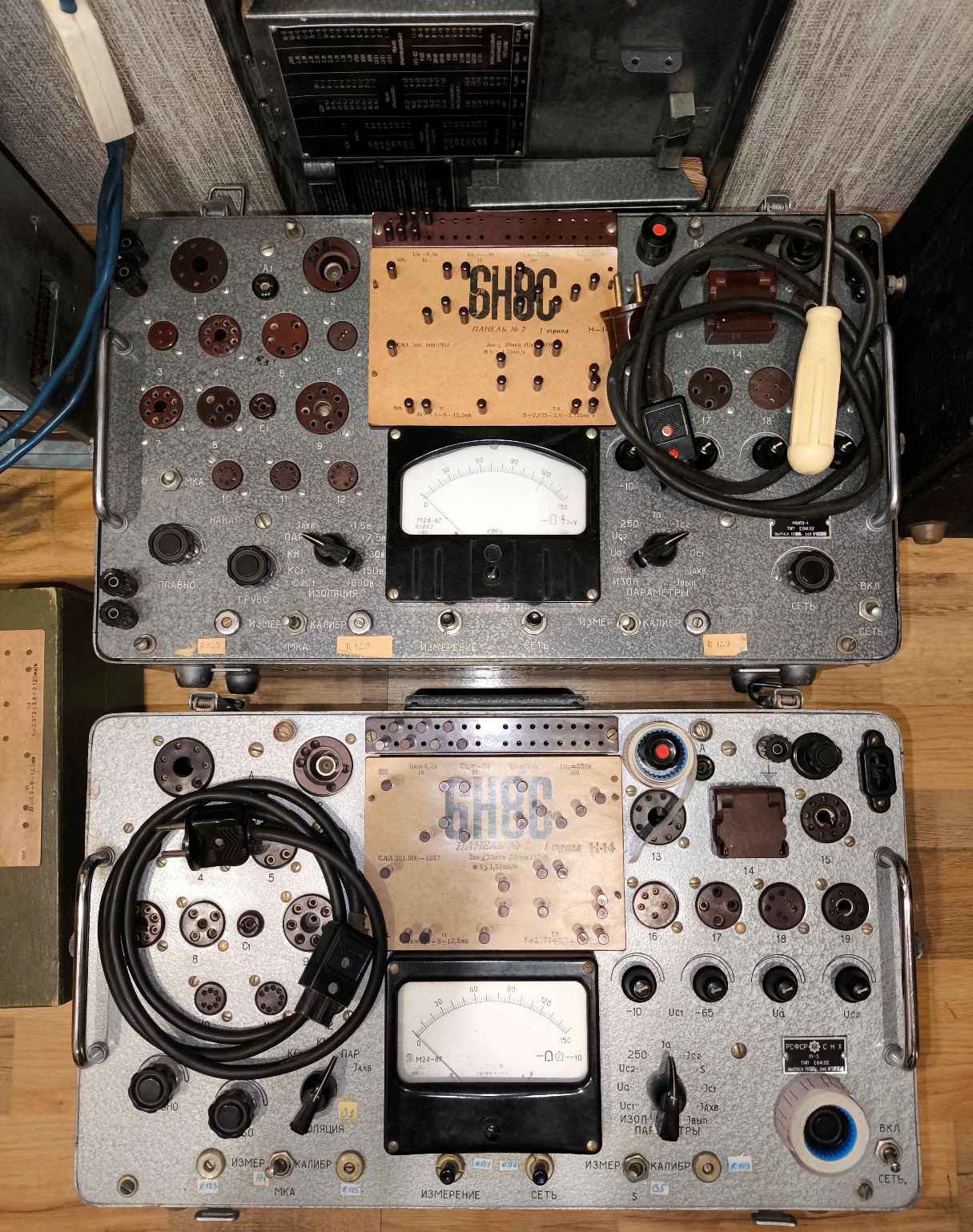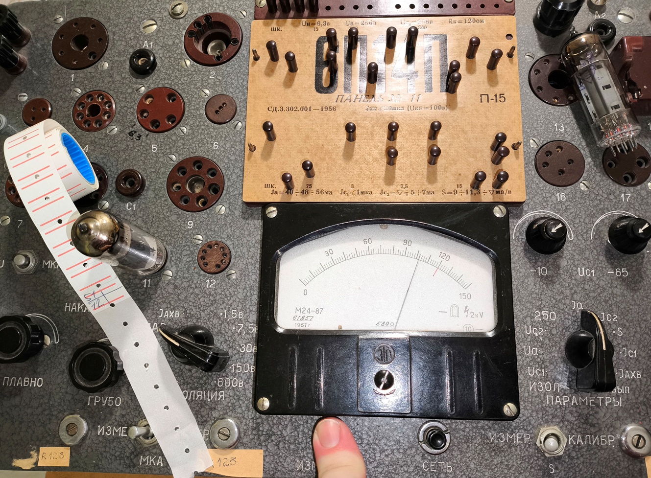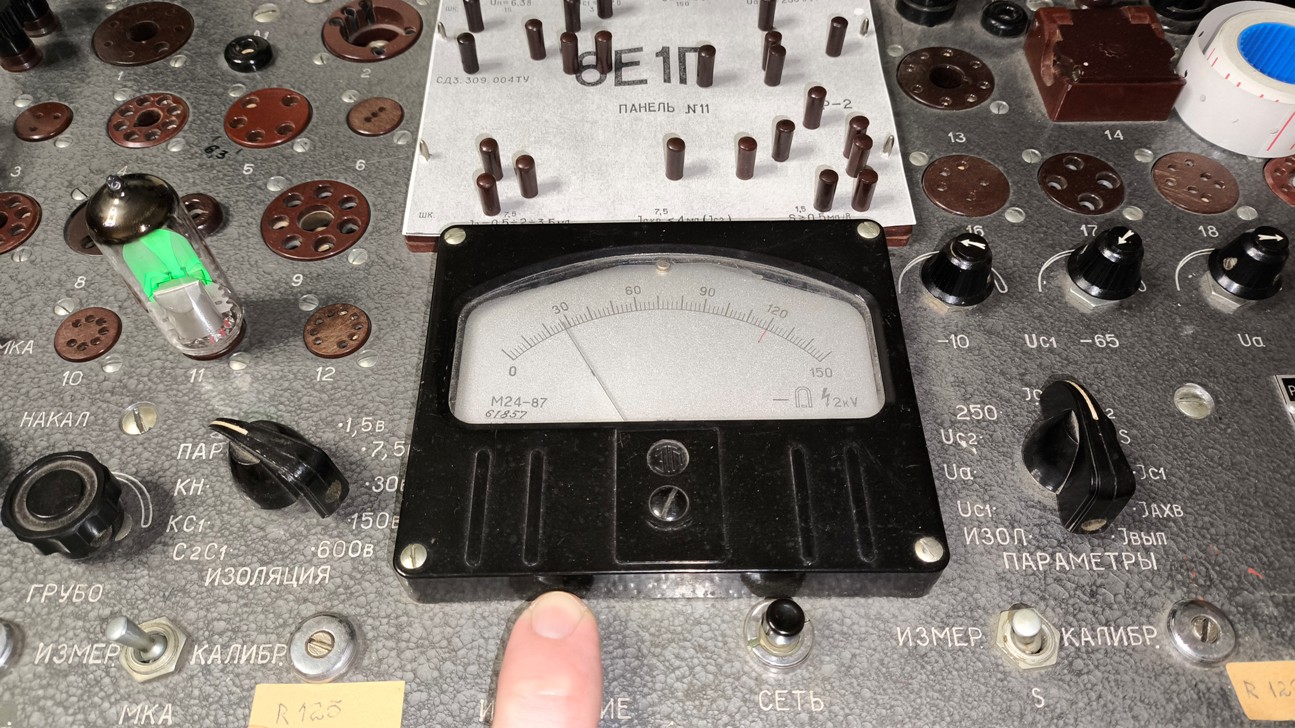 Испытатель радиоламп МИЛУ-1 (Л1-3). Для 60+ летнего прибора состояние хорошее. Все режимы работают - анодный ток, крутизна, ток 2й сетки. Из замеченных косяков- треснула колодка со штырями и не калибруется до красной черты крутизномер на 4 деления шкалы. На правильные показания не влияет. Сравнивал показания с другим моим прибором Л1-3- совпадают в пределах погрешности. ЗИП из ламп (частично) дам в комплект. Набор родных карт есть. Шнур только сетевой. Анодные шнуры легко спаять- штекер, провод, анодный колпачок или цанга. Доставка в Москву на Митинский радиорынок бесплатно. По стране- транспортными компаниями, вес 22 кг+ упаковка. Продам только в оч умелые ручки, т. к. лампы вещь довольно капризная, не для лузеров. Вопросы пишите в ЛС, Телеграм, Макс, разговаривать не всегда есть возможность.