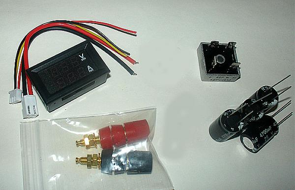 Набор деталей для сборки самодельного блока питания.