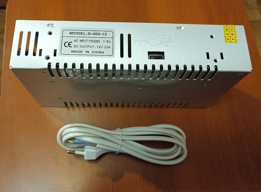 Новый источник постоянного напряжения 400 ватт, с новым сетевым проводом, длиной 1. 8 метра, предназначен для преобразования характеристик входного напряжения 220 Вольт в постоянное 12 Вольт. Максимальный выходной ток: 33А. Имеет высокую надежность. Предусматривает защиту от короткого замыкания и перегрузок. Плавная регулировка напряжения от 10. 5 до 14. 3 вольт.