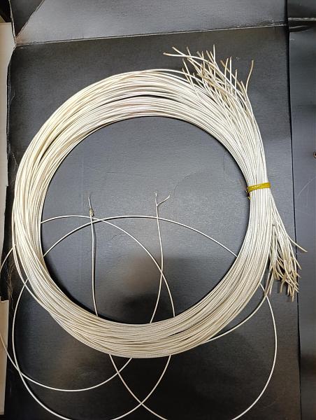 Радиочастотный кабель. Внешний диаметр 1, 3 мм. Центральная жила многопроволочная. Жила и оболочка посеребренные. 42 куска по 1, 5 метра
