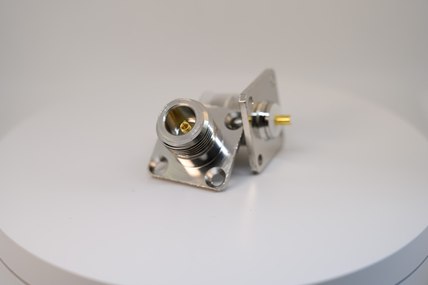 В наличии имеются разъёмы приборные (фланцевые), качественные: корпус никелированная латунь, изолятор - тефлон, центральный контакт - бериллиевая бронза.