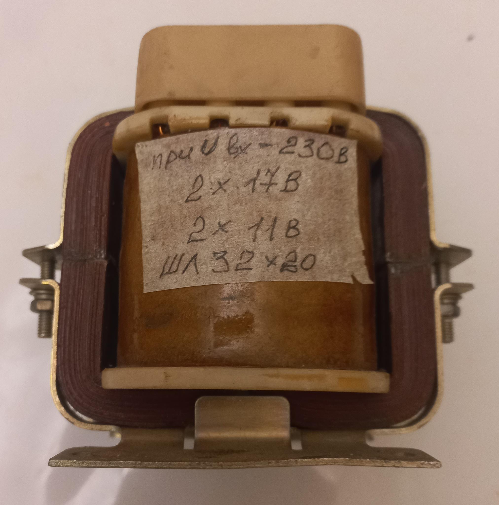 Добротно сделанный добротно, обмотки по 11В со средней точкой и по 17В со средней точкой, см. фото.
