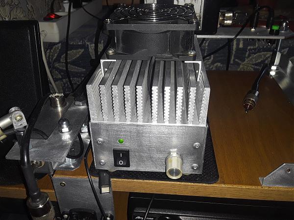 Продам усилитель на диапазон 430 мгц. Мощный радиатор с интенсивным обдувом. Вентилятор включается при 40 градусах. Выходная мощность усилителя 80ватт. Рабочий диапазом 420 - 520 мгц