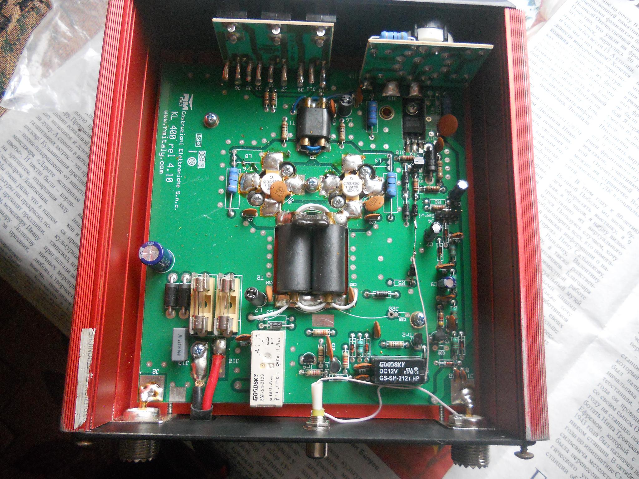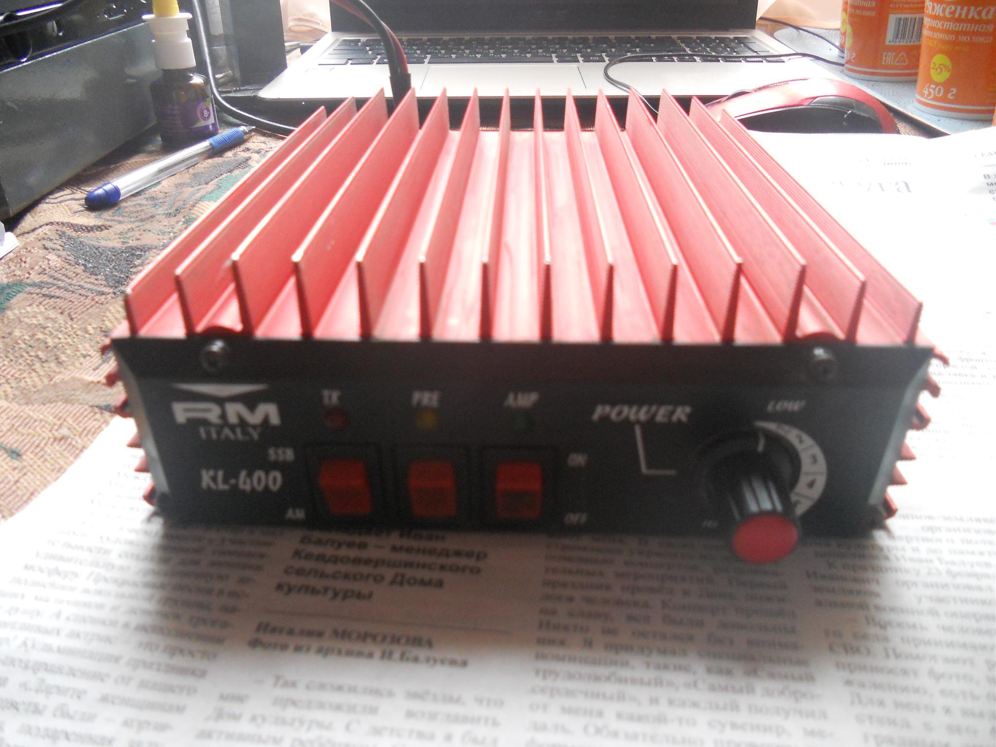 продам новый усилитель kl-400 на все кв диапазоны 1. 5-30 мгц 6- ступеней мощности на вход 8-10 ватт на выходе мощность 1. 8 мгц -450 ватт. 3. 5. 7. 10 мгц-340 ватт 14-18-21 мгц -240 ватт. 24-28 мгц -200 ватт есть гнездо ртт. можно педальку можно воксом работать. проверялось вч вольтметром в7-26 при 50 ом нагрузке.