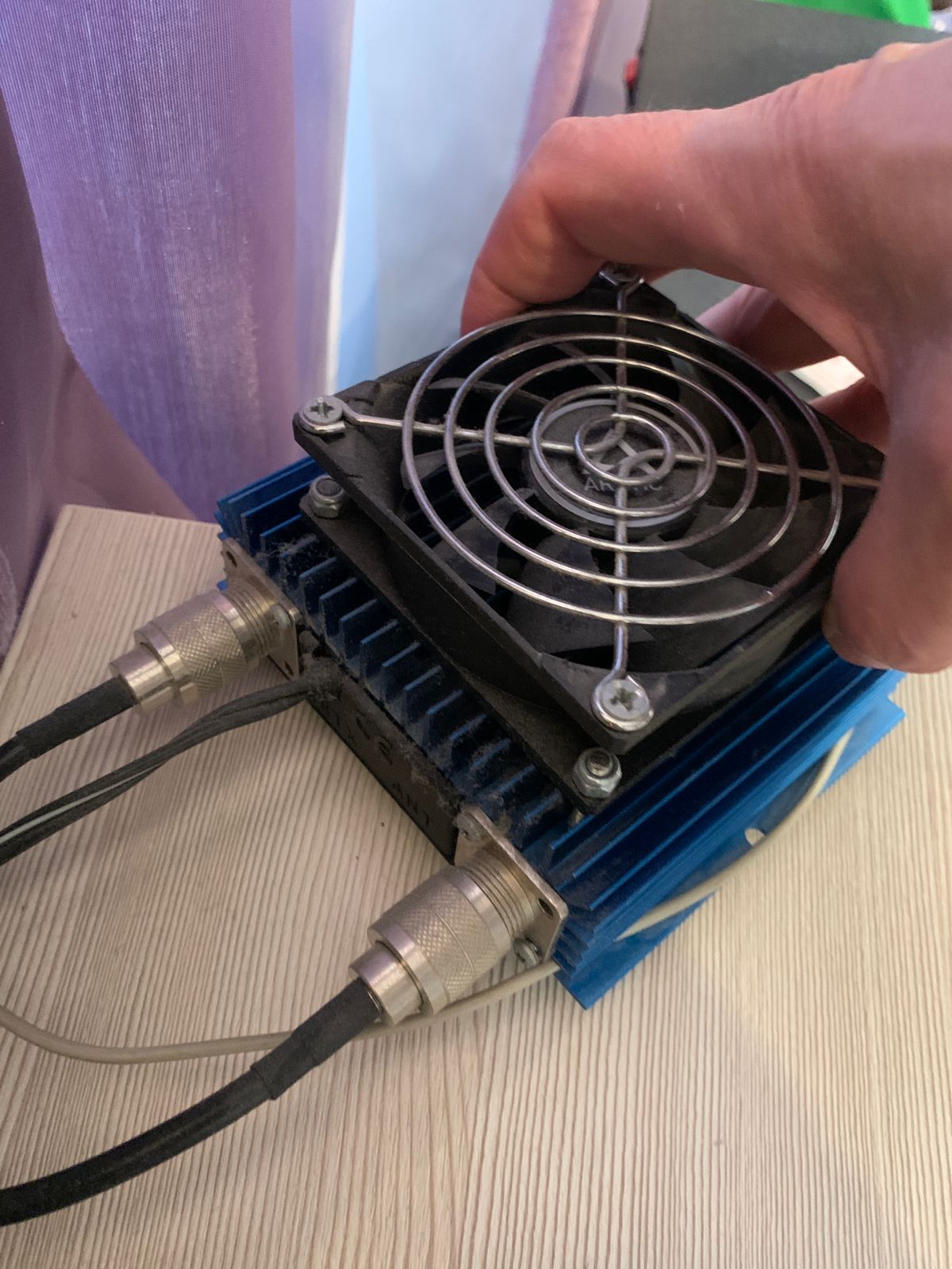 МилославскоеУсилитель АВ-300 с обдувом. Обдув включается автоматически при 40 градусах нагрева радиатора. Мощности на входе 6 ватт, можно и больше, в SSB я подавал 15 ватт, это при выключенном аттенюаторе усилителя. Усилитель «дубовый” не боится перекачки по входу, и высокого КСВ по выходу, в отличии от KL-300 ...