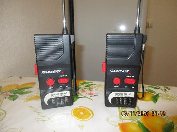 На прием шумят, на передачу работают вблизи - вероятно разбежались частоты и нужна подстройка. Корпуса целые, телескопические антенны выдвигаются, выключатели питания требуют внимания.