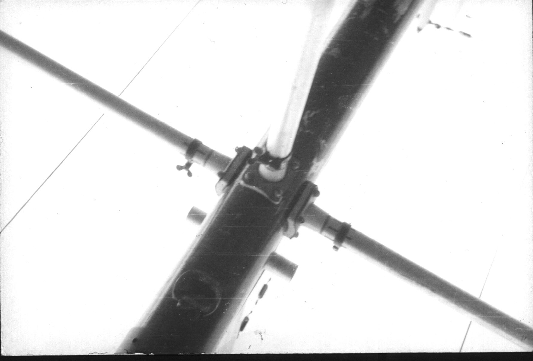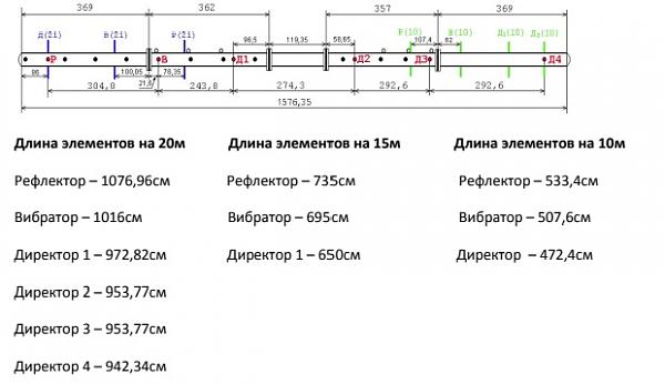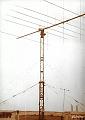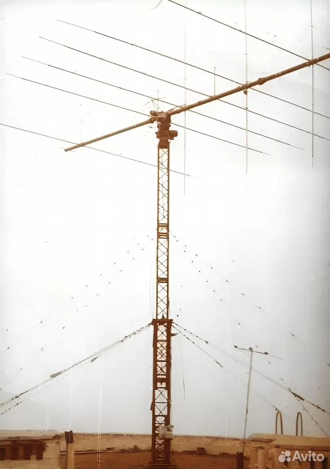 * На фото 1, 2, 3 Волновой канал 6Ell на 20м- горизонт, 3Ell на 15м -вертикал, 4Ell на 10м -вертикал, дата изготовления 1977г., взята за основу антенна американсого р/любителя W0OKC (Frank G Pellegrino), в то же время были на коллективках UK5MAA, UK5MAF и Евгения UA6HFO (SK), элементы крепятся к траверсе с помощью хомутов к приваренным дюралюминиевым прутам. Траверса разборная из 5 элементов D=100мм, конструкция очень крепкая, секции соединяются фланцами с направляющими и накидными болтами, элементы в комплекте, цена 27000.