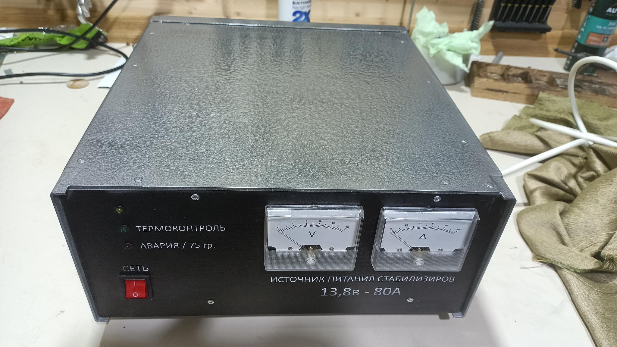 СочиПродаю трансформаторный стабилизированный блок питания 13. 8В 50А. Трансформатор тороидальный, сам блок питания заводской. Самостоятельно заменен только корпус на более качественный. Цена 50тр.