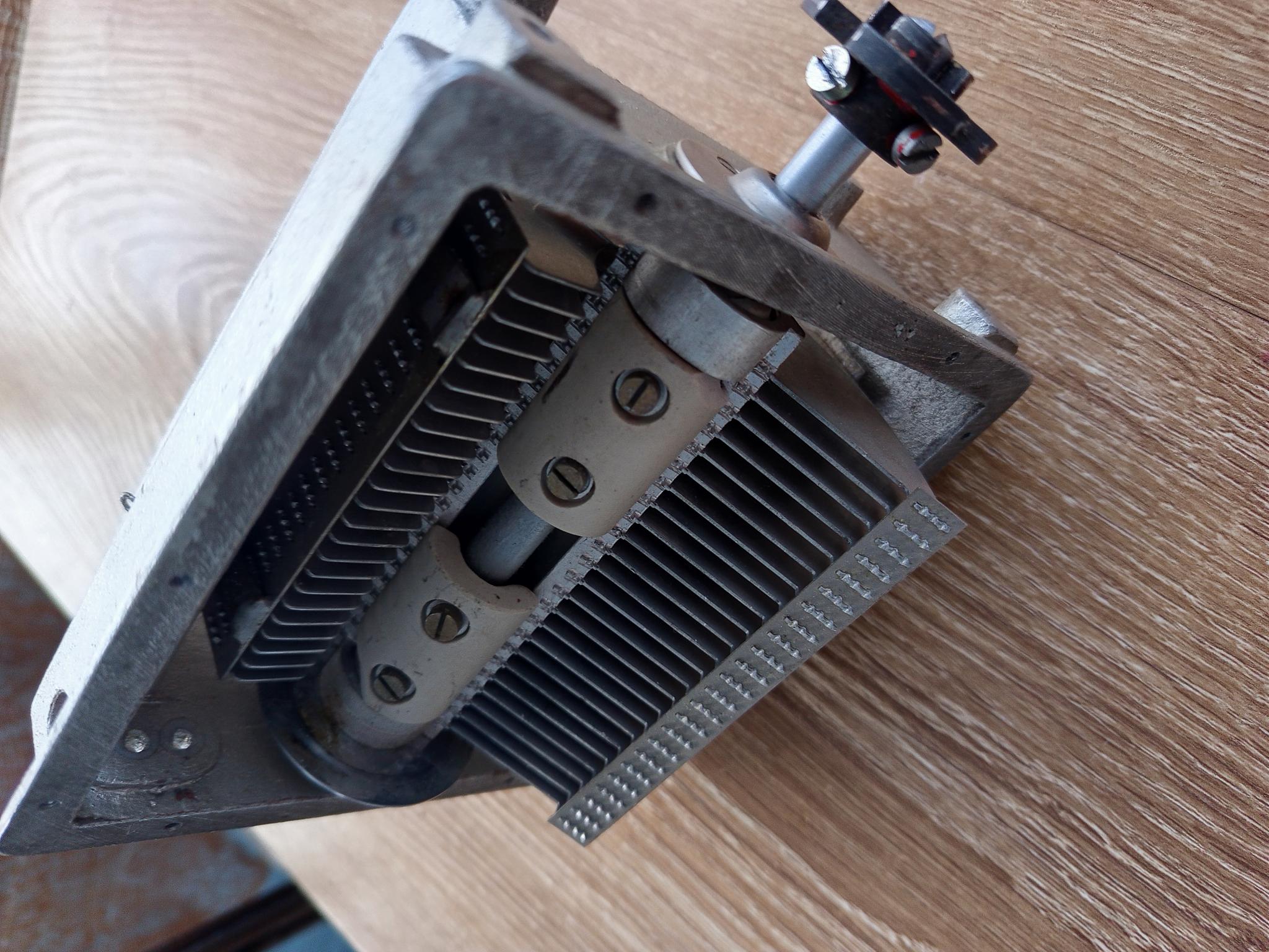 ТамбовПродам КПЕ, 2 шт. в одном корпусе. Габариты: 30х27х20см. Один КПЕ состоит из четырёх одинаковых секций с зазором между пластинами 1, 5 мм. и ёмкостью 50-514 пф. Второй КПЕ состоит: 2 секции с зазором 1, 3 мм. и ещё 2 секции с зазором 1, 0 мм. Общая ёмкость этого КПЕ: 40-718 пф. Вес около 7кг. Отправ ...