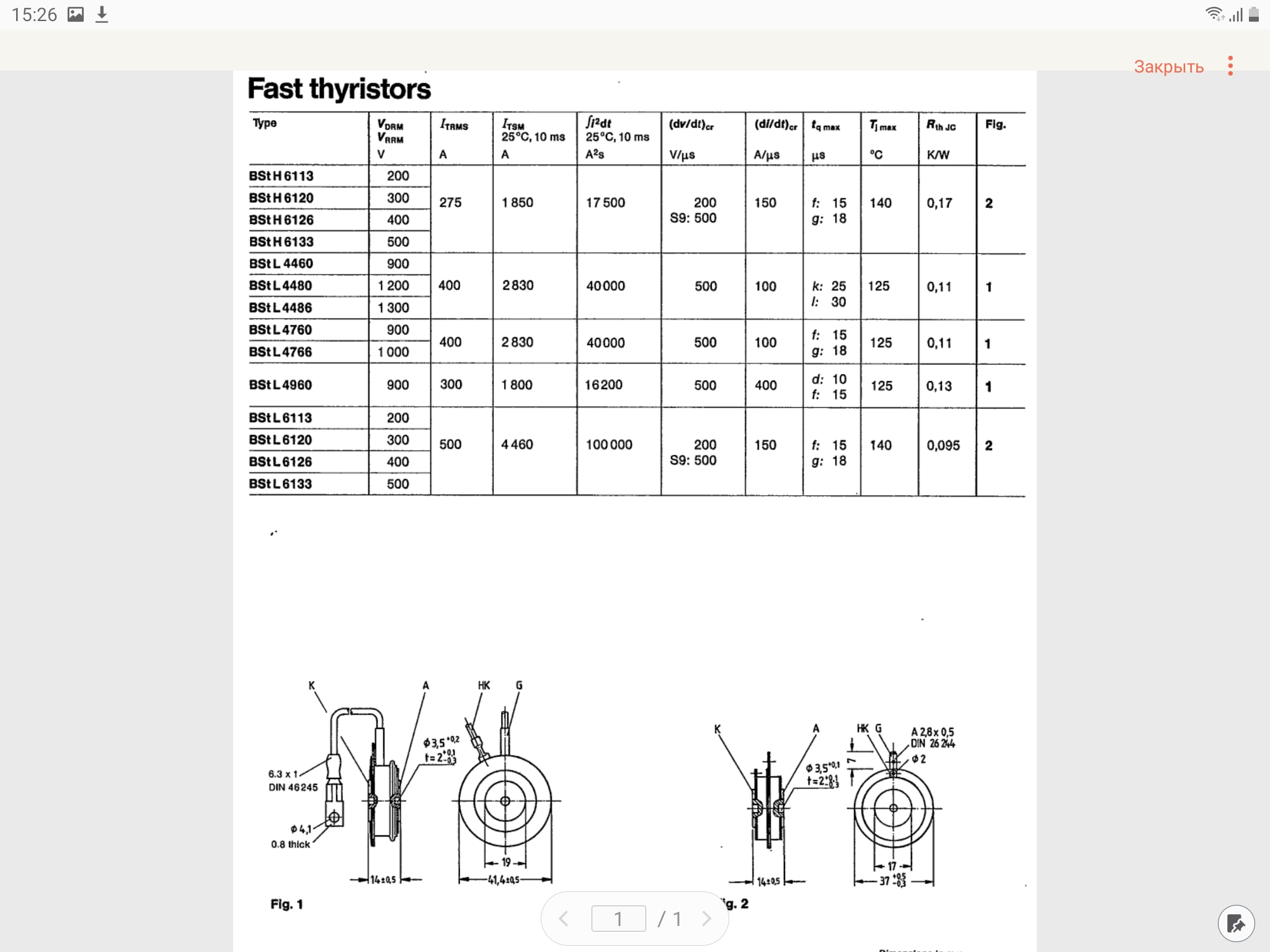 МоскваМежду радиаторами зажаты пара тиристоров А358S10TDF17FN и пара диодов D188S. Имеется тепловай выключатель и пара BYT230PIV1000. с двумя диодами на 30 А. 1000 v. в каждом корпусе. На фото 3 и 4 блок с быстродействующим тиристором BSTL 61 33 Siemens. Его рабочее напряжение до 500в и макс. ток 500А