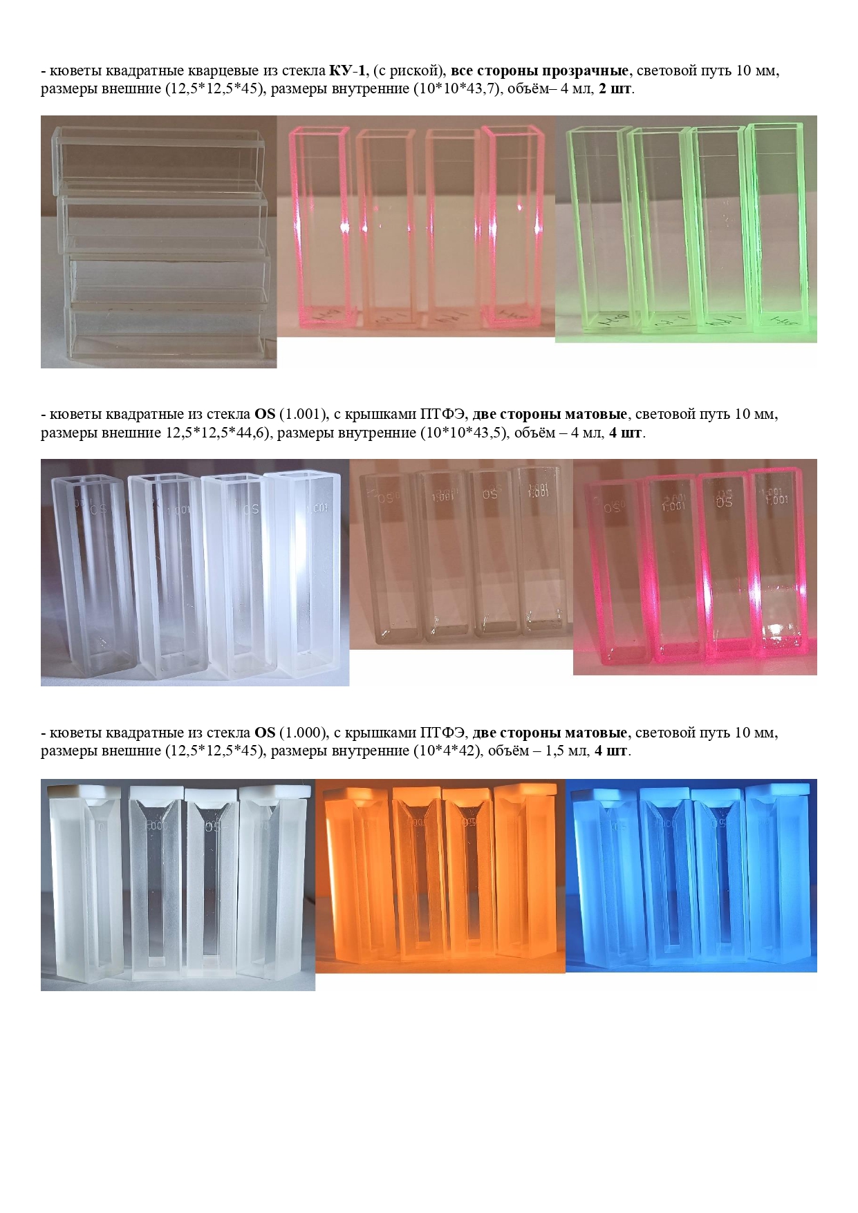 БарнаулКюветы кварцевые из стекла КУ-1 (180 - 2500) нм, и из специального оптического стекла OS (320 - 2500) нм. Отечественного и импортного (не Китай) производства, для фотоколориметров, флюориметров, спектрофотометров, с хранения. КУ-1 проверены на пропускание UV-C (200-280) нм, OS на пропускание UV ...