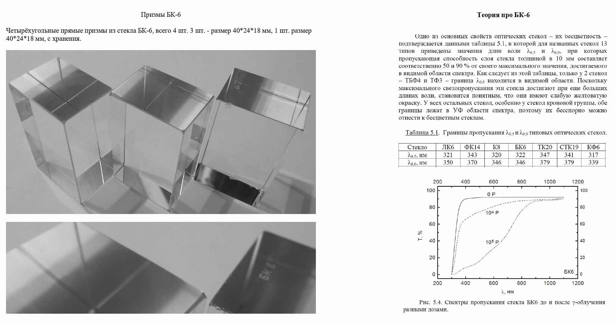 БарнаулПризмы из стекла БС10 и БК6, с хранения: - четырёхугольные прямые призмы из стекла БС-10, размер 40*24*18 мм, 3 шт.; - четырёхугольные прямые призмы из стекла БС-6, размер 40*24*18 мм, 3 шт. Стоимость призмы – 1000 за шт. Линзы приборные из кварца UV-C диапазона (проверены на пропускание (20 ...