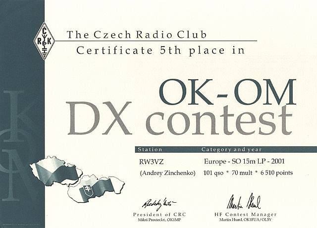Каждый участник сможет скачать свой сертификат с сайта OK-OM DX Contest. Бумажные дипломы не рассылаются.