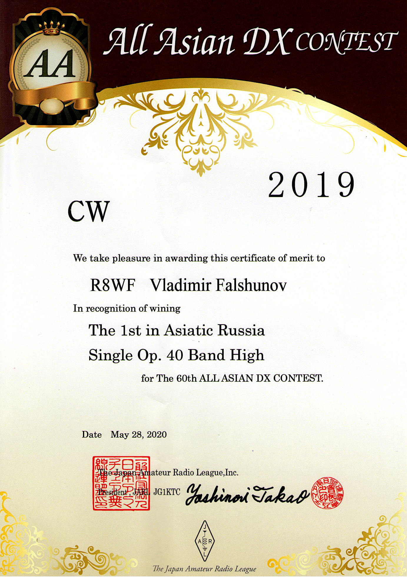 Дипломами Министерства связи Японии будут награждены лидеры на своих континентах в группе "один оператор - много диапазонов".