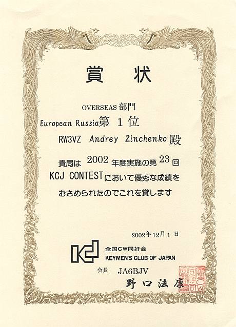 Диплом за KCJ 2002 |