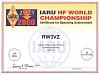 Мероприятие подкупает своей масштабностью и количеством участников. Но разве так проводят соревнования, тем более чемпионат, когда всех участников сводят в общий список по странам даже не определив места по диапазонам, мощности, коллективка или индивидуалка. Сам диплом местечкового уровня дизайна и информативности, из года в год что-то в нём пропускают или добавляют. Видимо зазнались организаторы, упростили себе задачу или просто не справляются. Юрко UT5NC