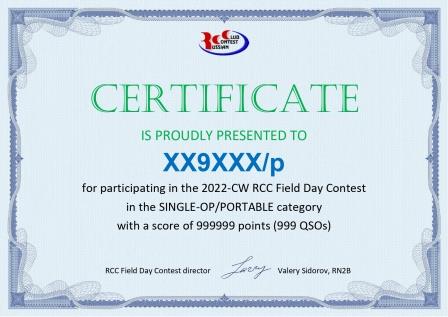 - Кубок (или иной ценный приз) и диплом за 1-е место среди радиостанций, работавших с территории Российской Федерации в категории Single-Op/Portable, если в этой категории победитель среди российских станций отличается от победителя среди станций 1-ого района IARU