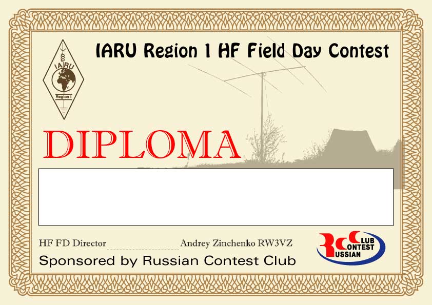 - Диплом за 1-е место среди радиостанций, работавших с территорий и стран, находящихся за пределами 1-го района IARU в категории Single-Op/Portable