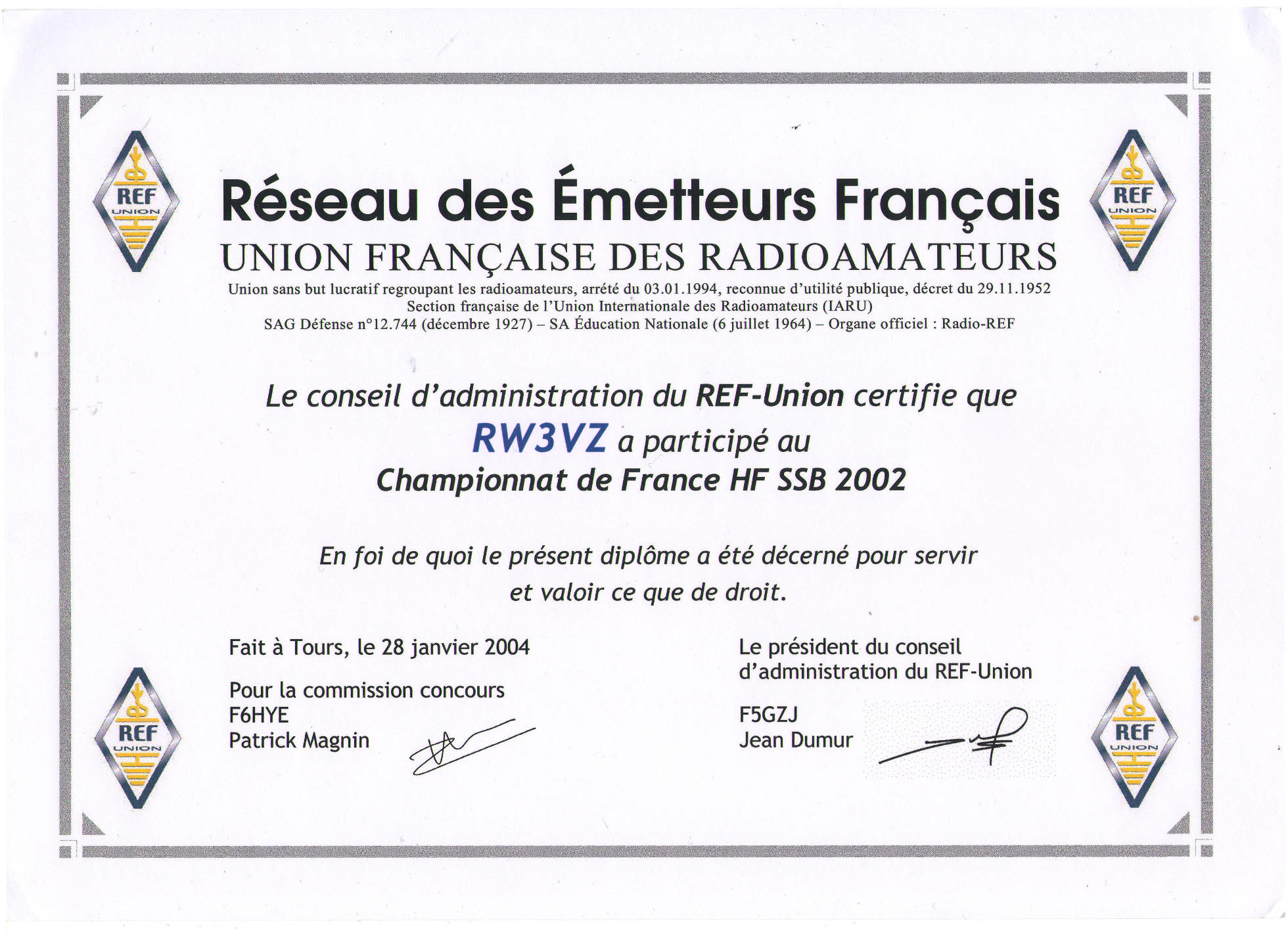 - F6REF (штаб-квартира REF): RS(T) и 00.