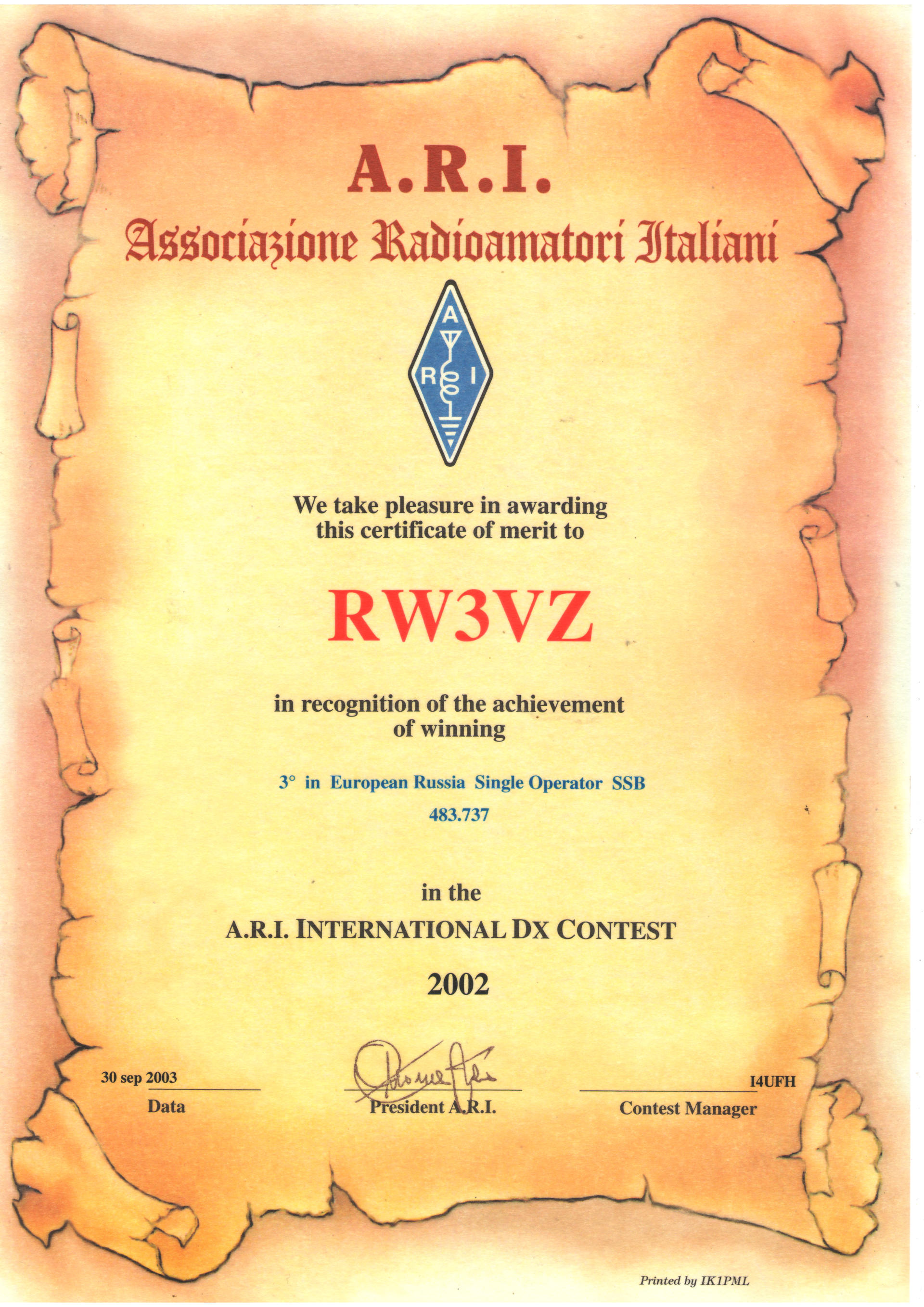 d) все действия и решения комитета ARI HF DX Contest являются официальными и окончательными.