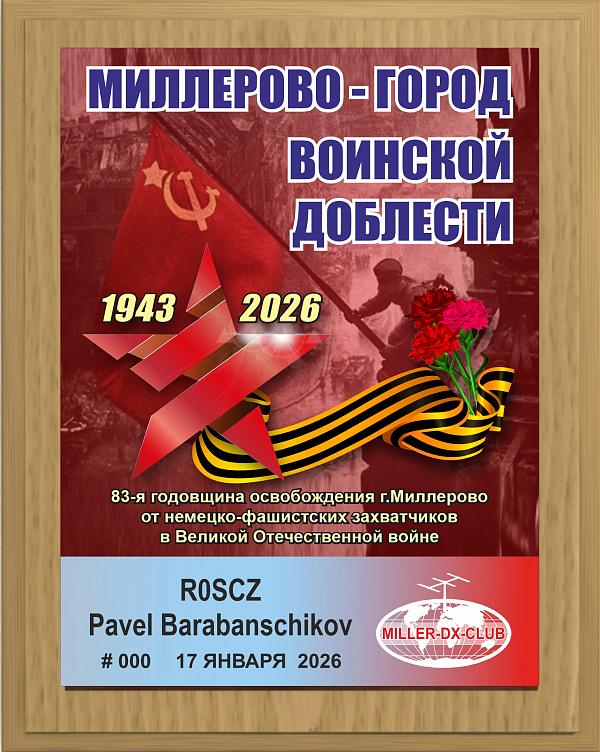 Дни активности проходили с 14 по 18 января 2026 года. В днях активности приняли участие 85 операторов-членов клуба. Обладателями диплома Миллерово – Город воинской доблести! стали 154 радиолюбителя из 18 стран.
