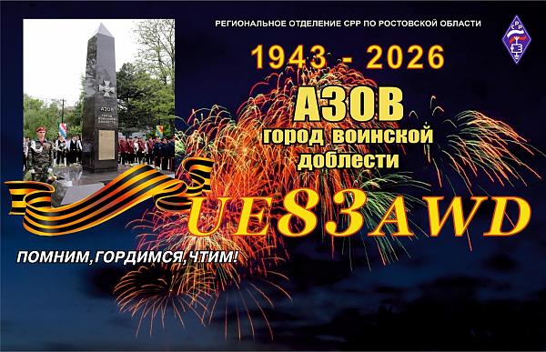 В целях сохранения военно-исторического и культурного наследия, укрепления единства российского народа, популяризации радиолюбительства, развития радиоспорта Азовское местное отделение регионального отделения Союза радиолюбителей России по Ростовской области проводит дни активности, посвященные 83-й годовщине освобождения г. Азова и Азовского района во время Великой Отечественной войны 1941-1945 годов.