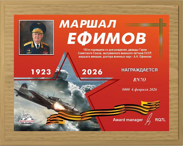 Количество радиолюбителей выполнивших условия получения диплома "Маршал А.Ефимов" - 190 из 19 стран мира.