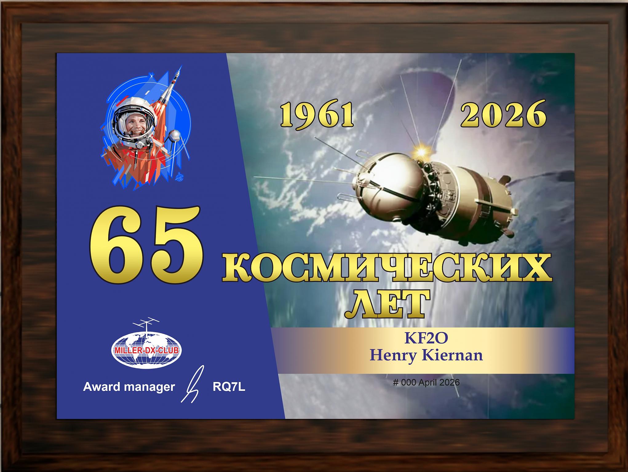 «65 – Космических лет» PLAQUE : 65 очков