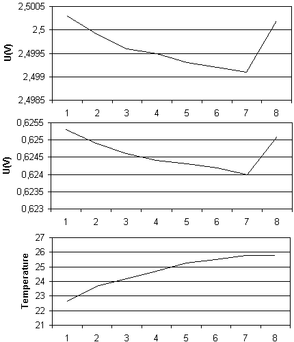 в точке 2,5В, изменение напряжения в точке 0,625В и изменение температуры.