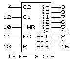 C1 - тактовый вход счетчика -WR - вход записи EC - вход разрешения тактов R - вход начальной установки Qg - выход генератора Q0-Q3 - выходы разрядов DF - выход сигнала переполнения SE1-SE3 - выходы выбора декад
