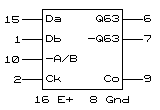 выбором входа (-A/B), тактовым входом (Ck), буферированным выходом тактового
