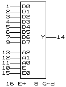 A2-A0 - адресные линии E - строб EO - перевод выхода в 3-е состояние Y - выход