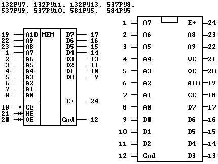 Расположение выводов микросхем статической памяти
