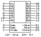Схема состоит из двух 8-разрядных приемопередатчиков с тремя состояниями